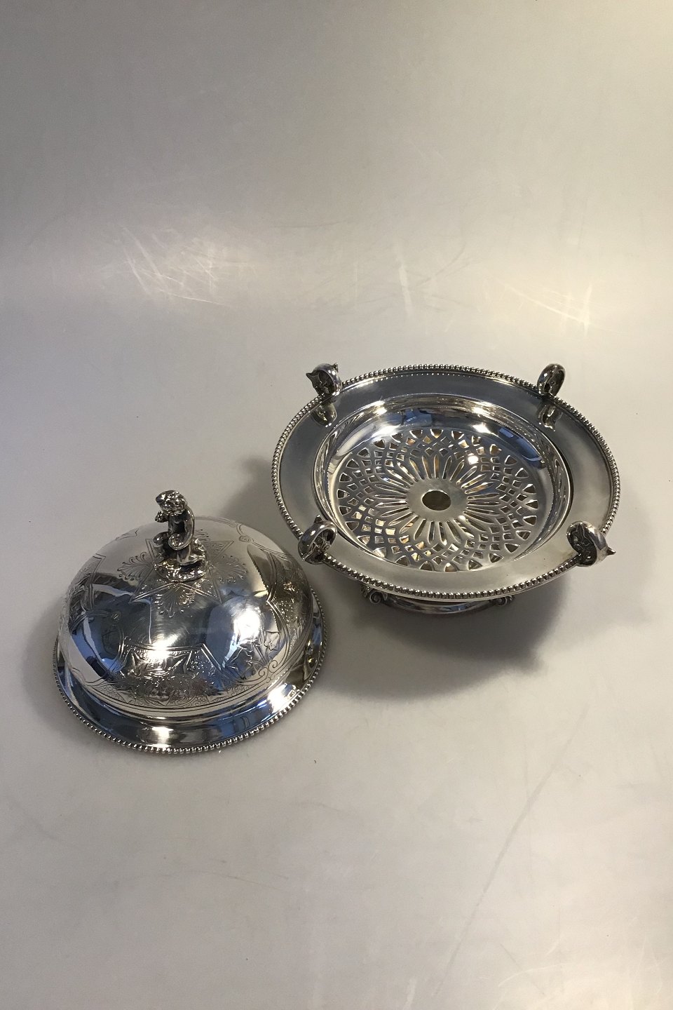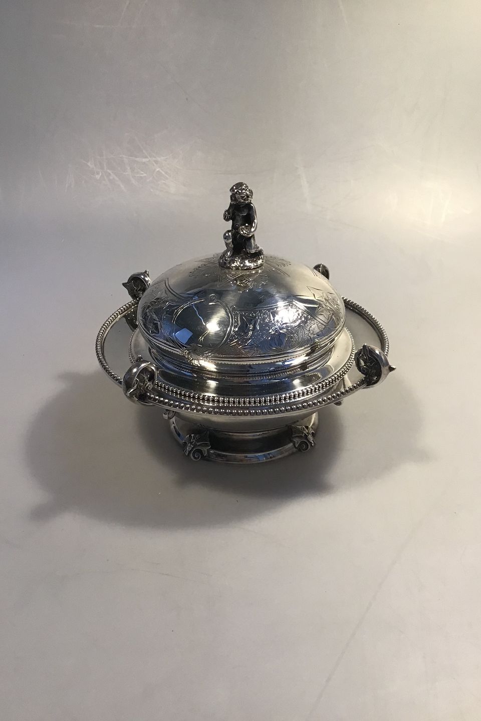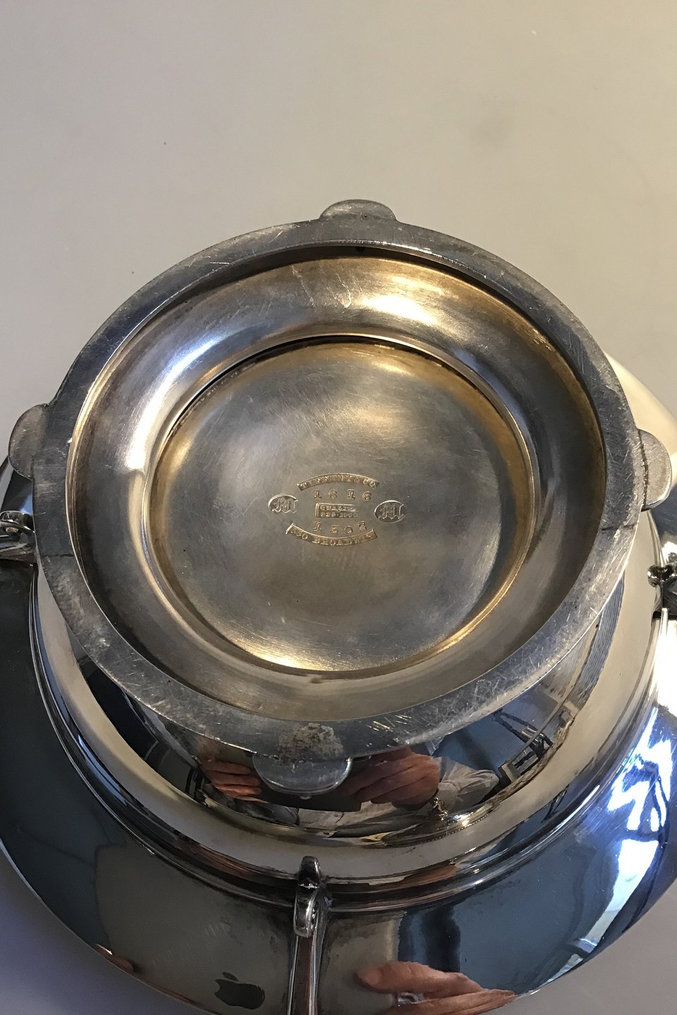 Tiffany Sterling Silver Caviar Dish Leaf engravings, grip shaped as putto. Master J.C. Moore & Son, No 1616 and 1302. Tiffany & Co. H. 16 cm/6.29" Diam. 17,5 cm/6.88" Weight 833 gr./29.38 oz.