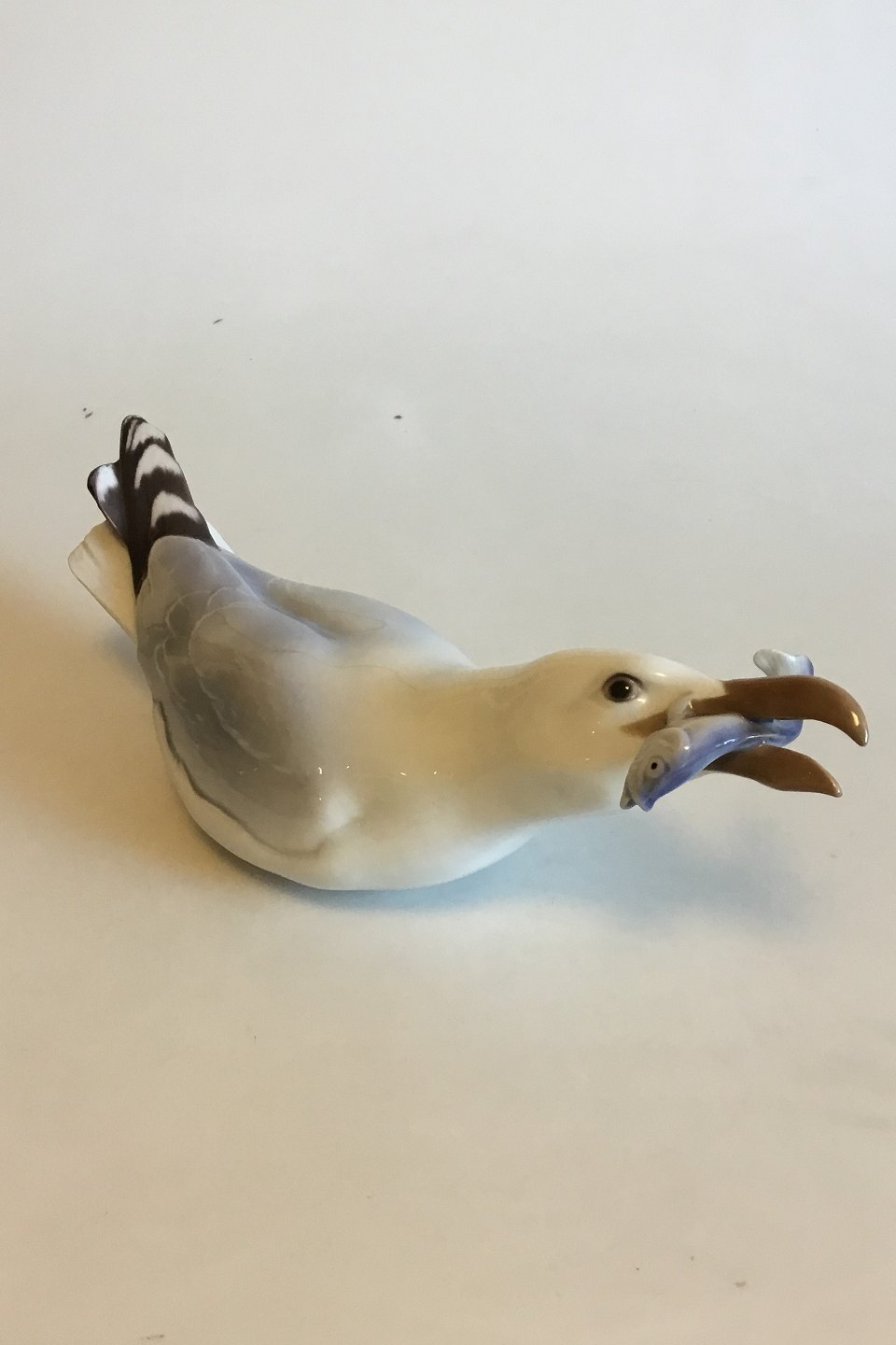 Bing & Grondahl Figurine of Seagull with fish No 1725. Measures 36 cm / 14 11/64 in. Repair on tale