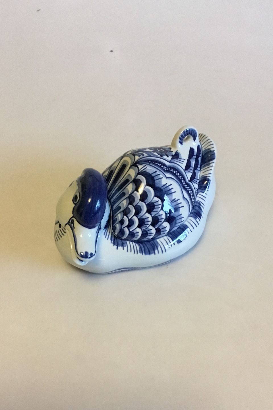 Royal Copenhagen Blue Tranquebar Bonbonniere Duck No 3043/1058. Measures 17 cm / 6 11/16 in.