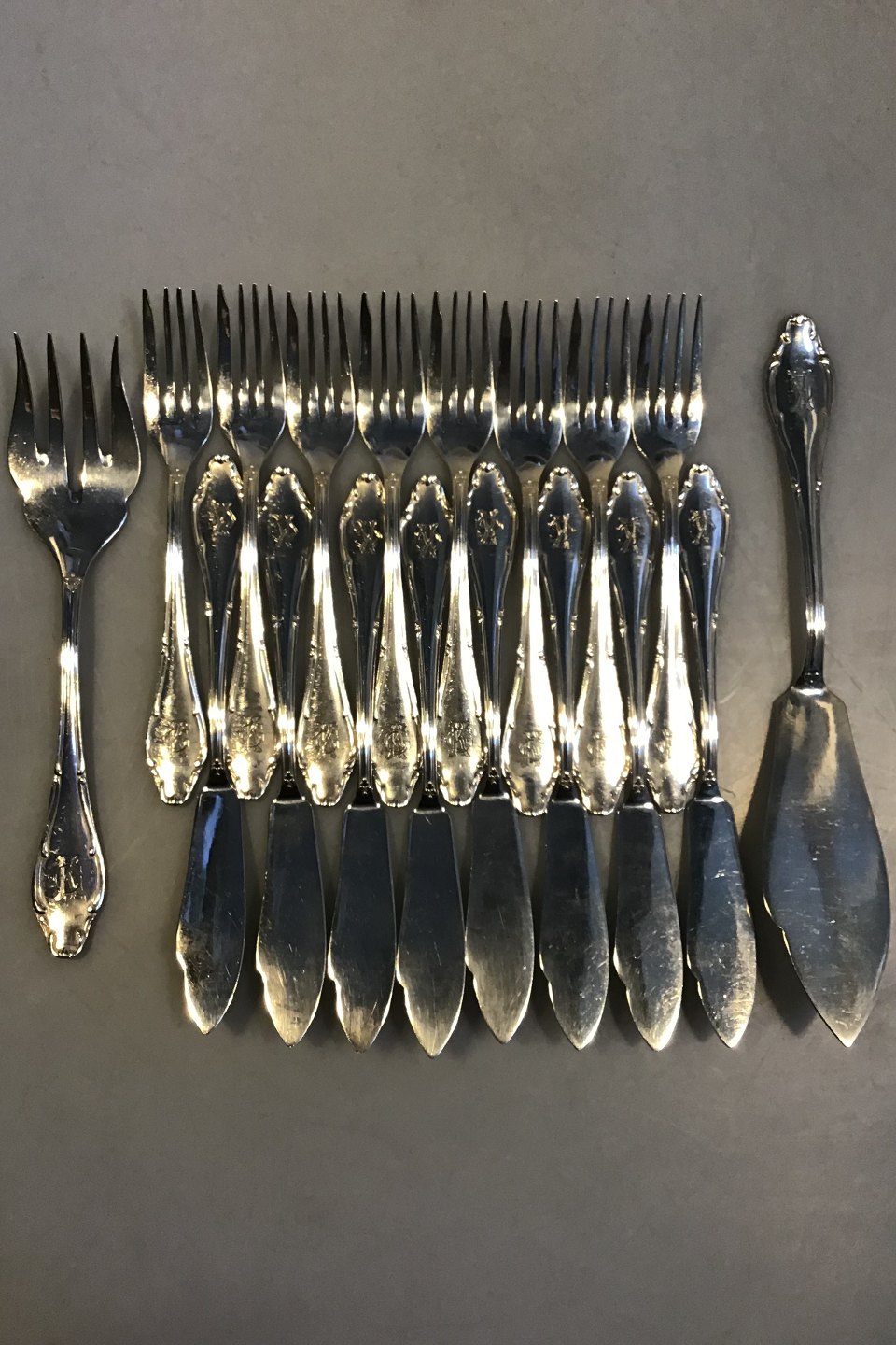 German Plated Fish Cutlery for 8 Pers incl Servingset (18 pcs)(All parts witg engravings) Fork 18.3 cm/7.20" Knife 20.5cm/8.07" Servers 21.5/8.46" and 25.5 cm/10.03"