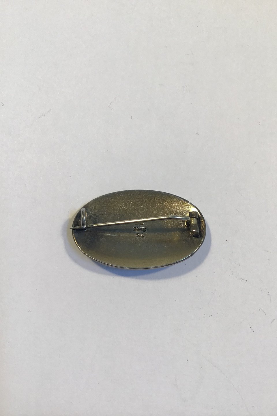S.L. Jacobsen Sterling Silver Brooch with enamel/guilloche Measures 2.0 cm x 3.1 cm/0.78" x 1.22" Weight 6.2 gr/ 0.22 oz