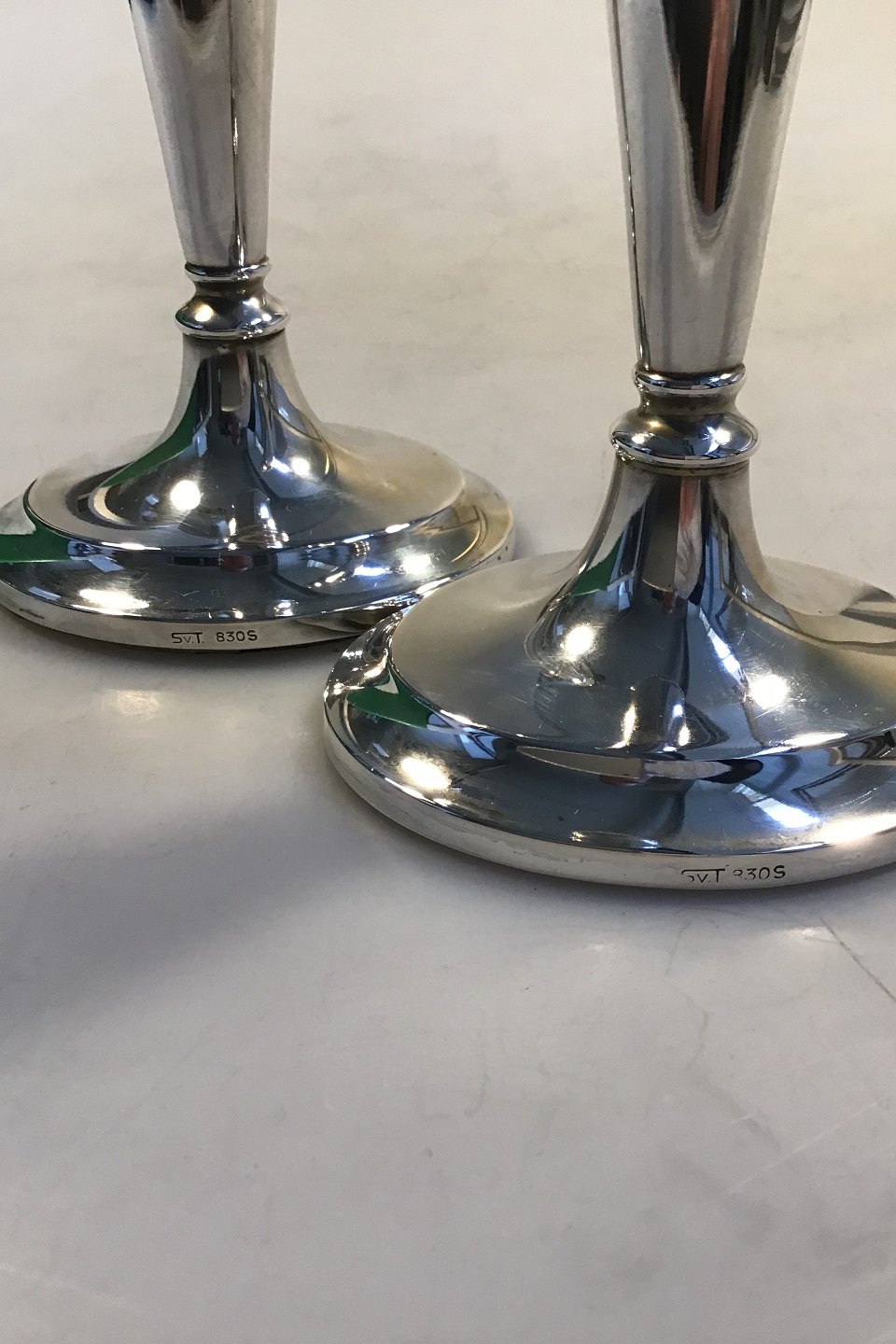 Svend Toxværd Silver Candlesticks (2)Weighted Oval Foot H 18.5 cm/7.28"
