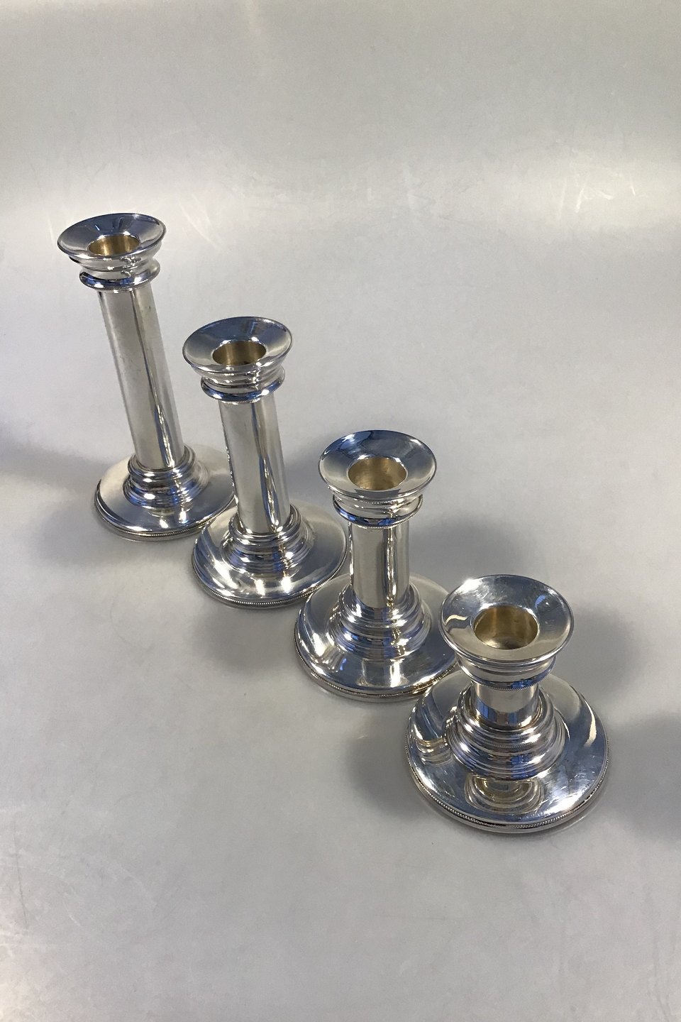 Candle Sticks Sterling Silver No 337(4) Set of 4 Candle Sticks of varying heights repectively 8, 11, 14 and 17 cm(3.15", 4.33", 5.51" and 6.69") Combined weight 650 gr/22.92 oz