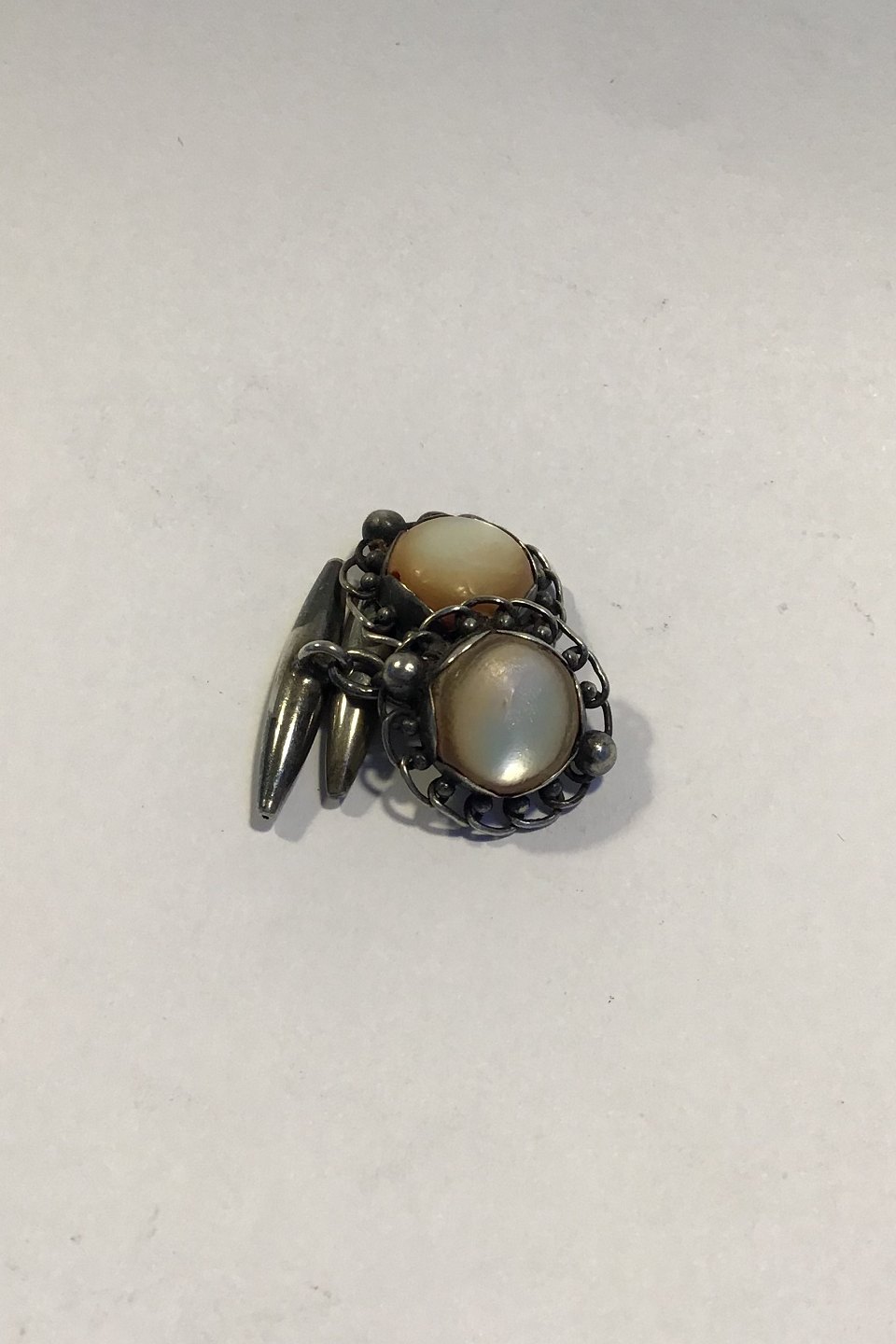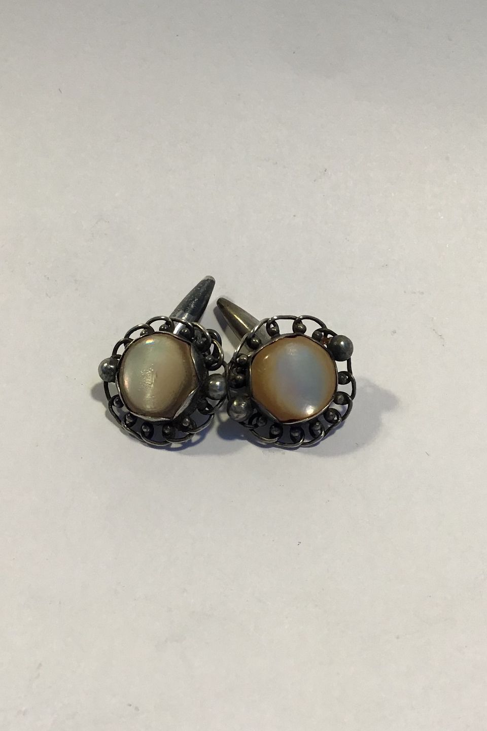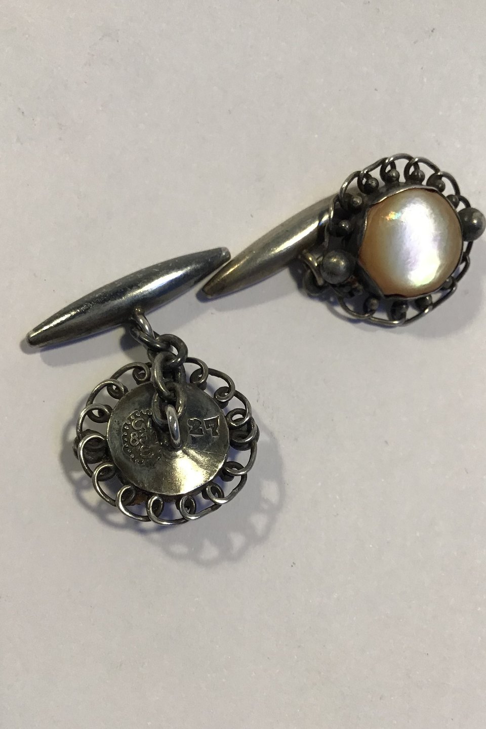 Georg Jensen Silver Cufflinks No 27 (1915-1927) Mother of Pearl Diam 1.7 cm/0.67" Combined weight 7.3 gr/0.26 oz