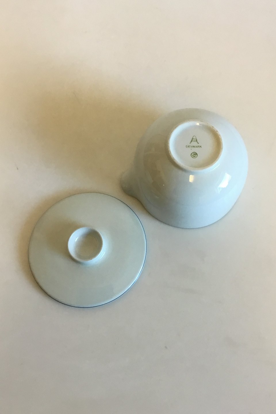 Royal Copenhagen Grethe Meyer Blue Line Gravy Bowl with Lid No 3085A. Measures 7.7 cm / 3 1/32 in. x 11.5 cm / 4 17/32 in.