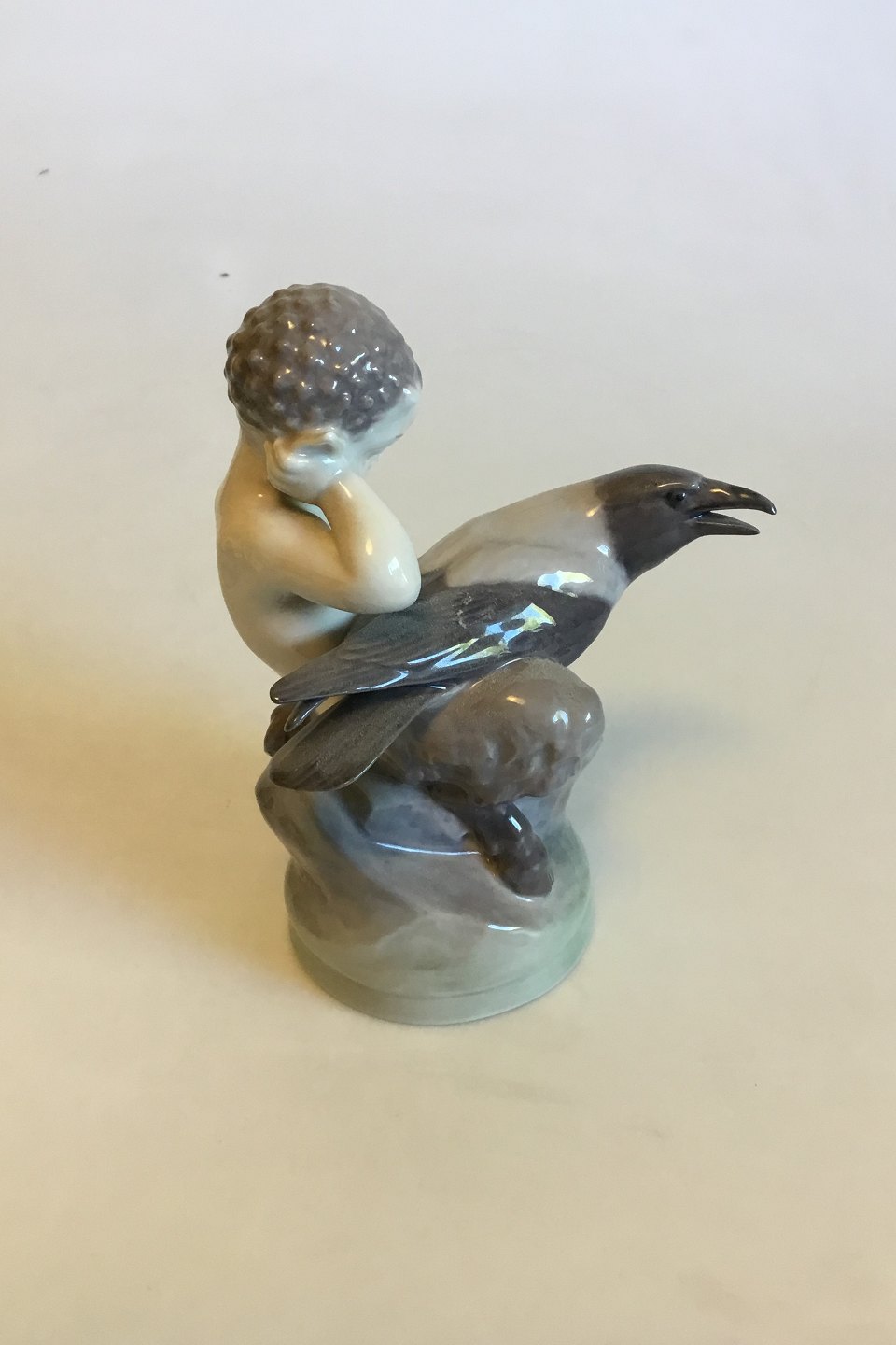 Royal Copenhagen Figurine of Faun with a Crow No 2113. Measures 16 cm / 6 19/64 in.