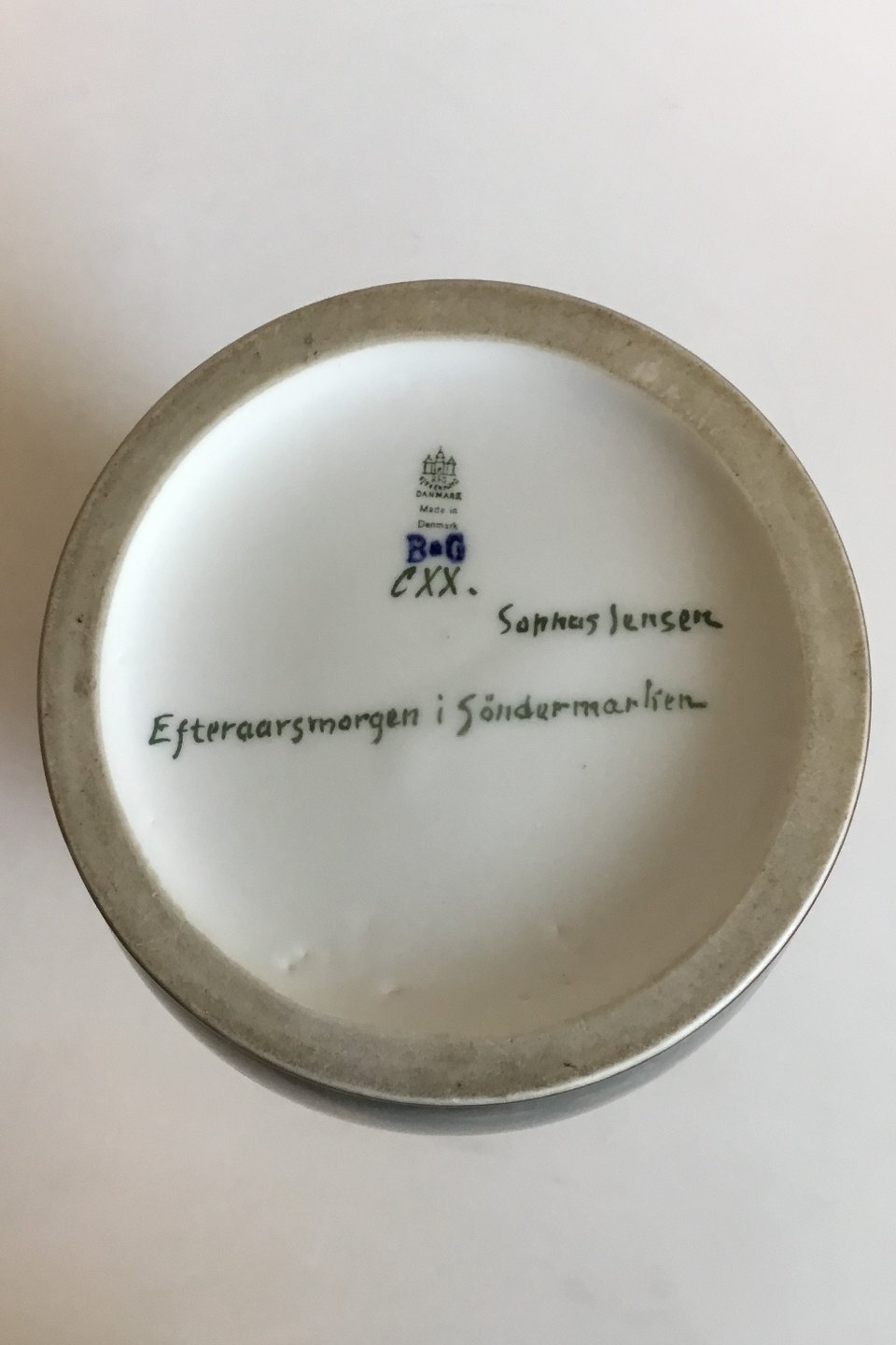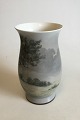 Bing & Grondahl Art Nouveau Unique Vase. Signed Sophus Jensen, "Autumn morning in Søndermarken". Measures 30 cm / 11 13/16 in.