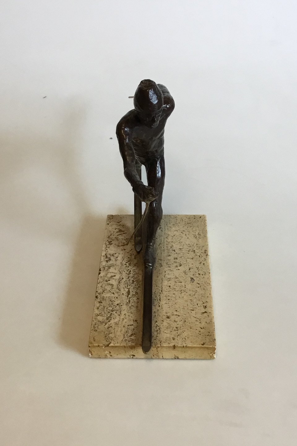 Royal Copenhagen Bronze statue of Cross-country Skier. Designed by Sterett-Gittings Kelsey in 1976. Measures 26 cm / 16 17/32 in.