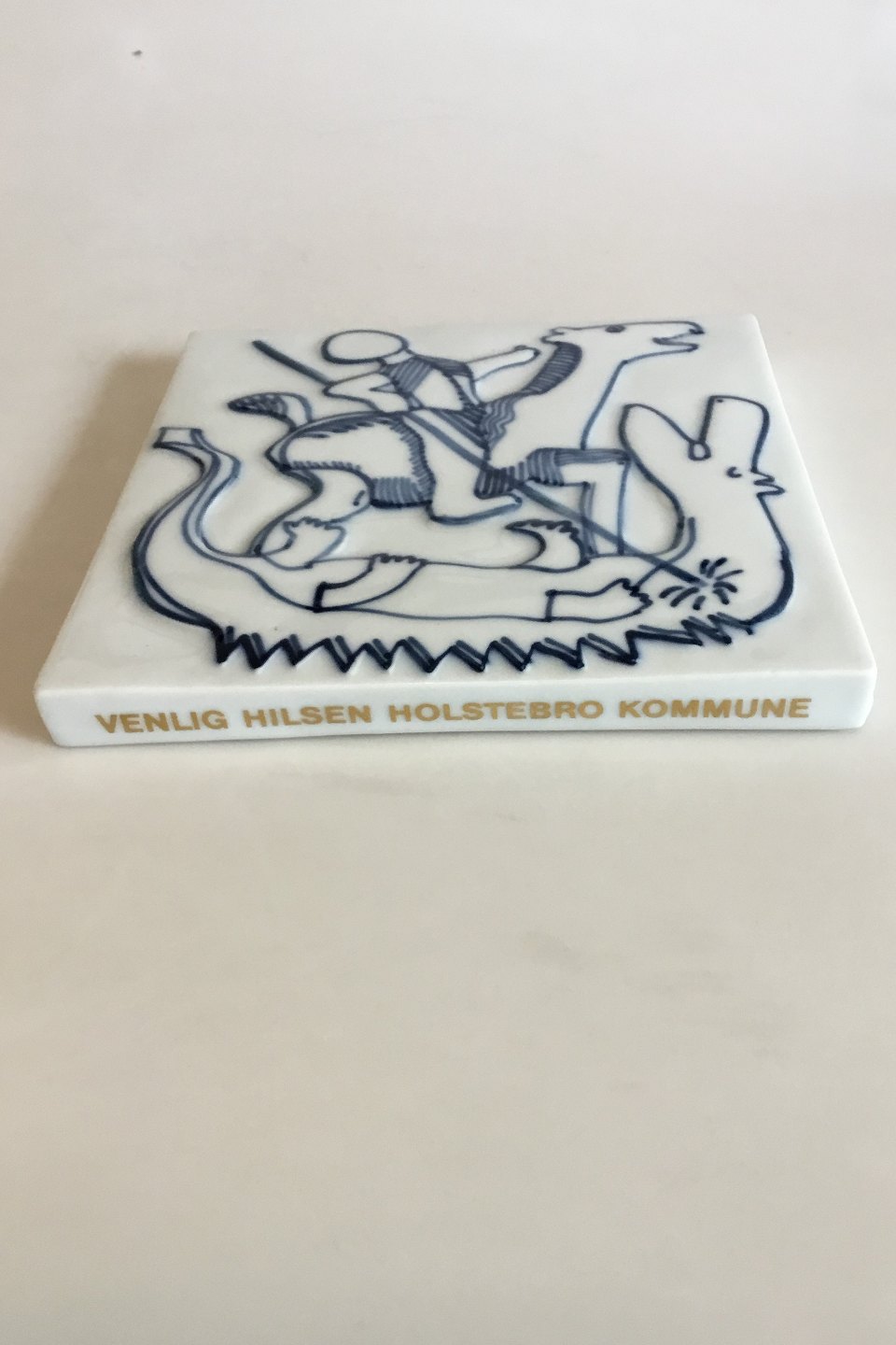 Bing & Grondahl Relief/Tile Marked "STEN" (Sten Lykke Madsen). Measures 19 cm / 7 31/64 in. x 19 cm / 7 31/64 in. "Venlig hilsen Holstebro kommune"