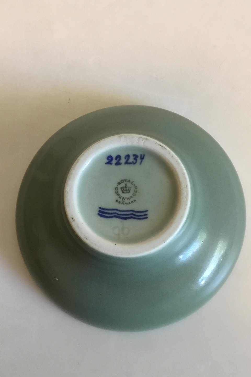 Royal Copenhagen Candle Holder by Gerd Bogelund with green Celadon Glaze No 22234. Measures 4 cm / 1 37/64 in. x 12.5 cm / 4 59/64 in.