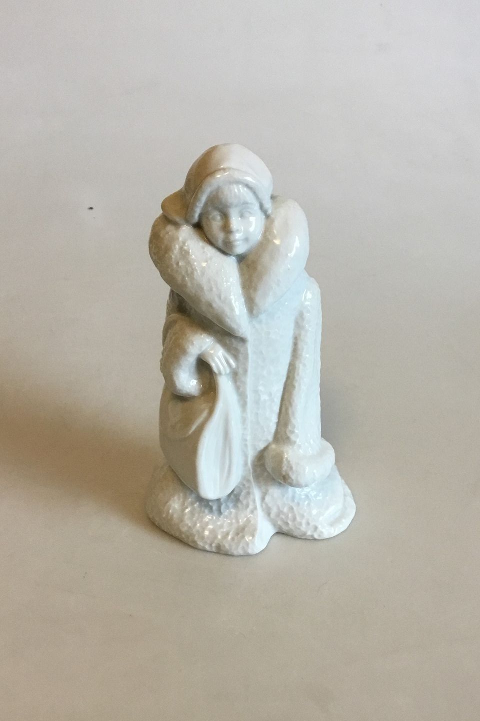 Bing & Grondahl undecorated figurine of Girl with Bag. Measures 17 cm / 6 11/16 in.