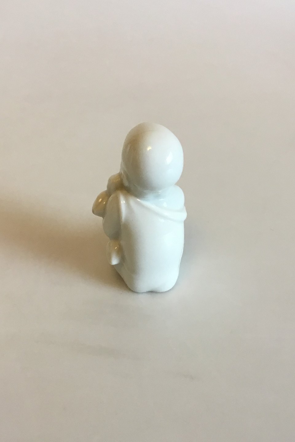 Royal Copenhagen Blanc de Chine Figurine of Baby with flowers. Juliane Marie Stamp. Measures 7 cm / 2 3/4 in.