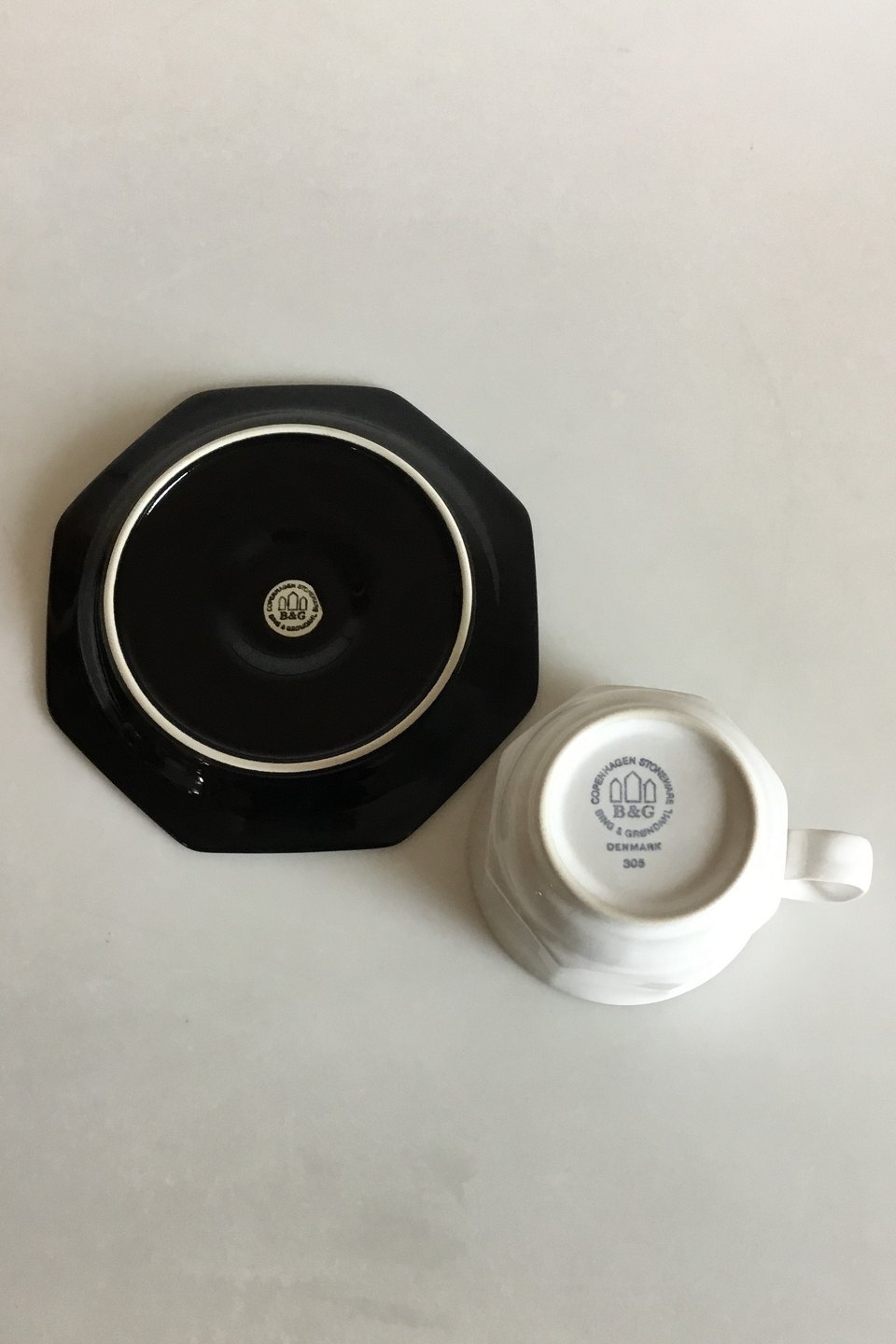 Bing & Grondahl White Café Coffe Cup and black Saucer No 305. Measures Cup: 6.5 cm / 2 9/16 in. x 8.5 cm / 3 11/32 in. dia. Saucer: 15 cm / 5 29/32 in.