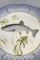 Royal Copenhagen Blue Fish Plate with Gold No 1212/3002. With Salmo salar. 23 cm (9 1/16").