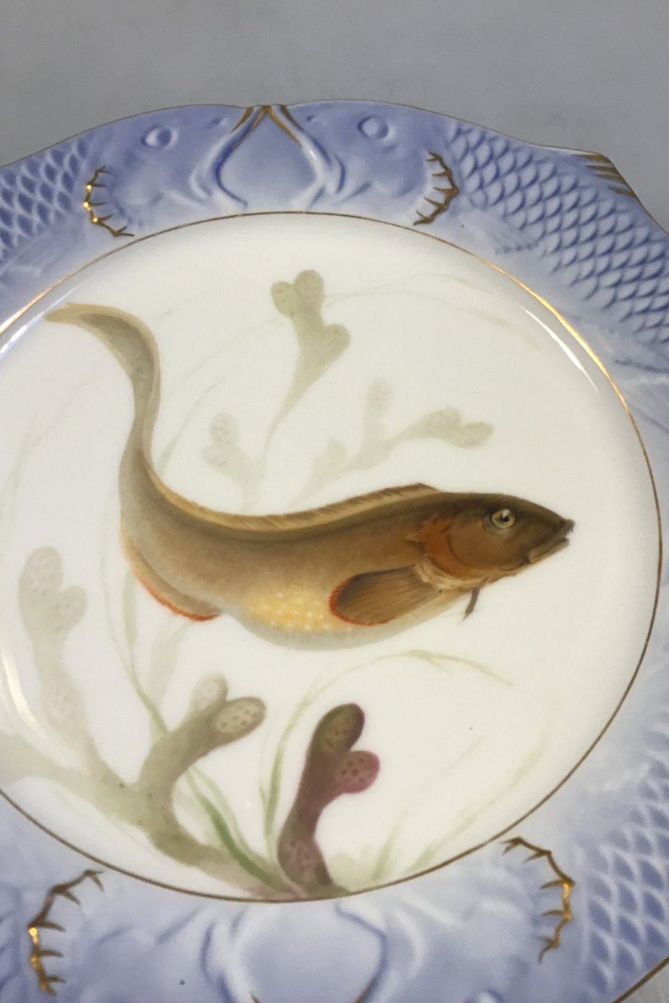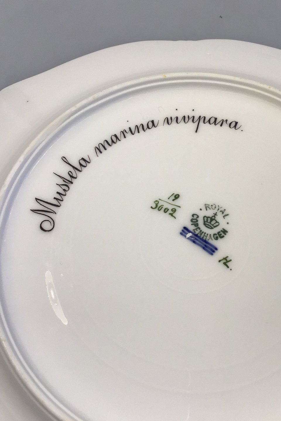Royal Copenhagen Blue Fish Plate with Gold No 1212/3002. With Mustela marina vivipara. 23 cm (9 1/16").