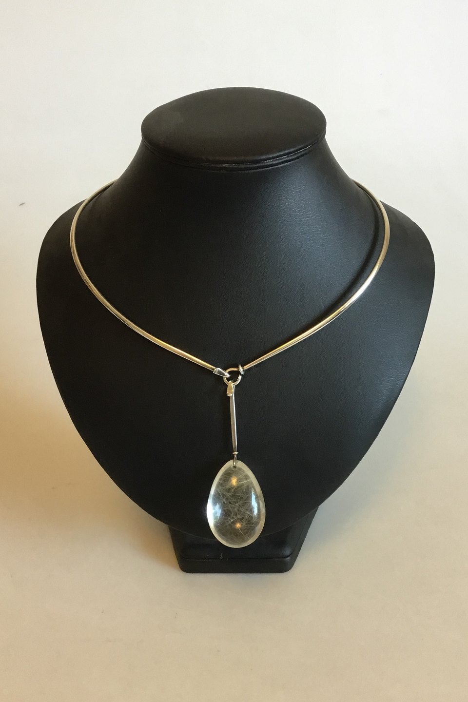 Georg Jensen Sterling Silver Set consisting of Neck Ring No 114 with Pendant of Rutil Quartz No 131 and associated Earrings with Screw lock. Designed by Vivianna Torun Bülow-Hübe. Measures Pendant: 8 cm / 3 5/32 in. Earrings: 5.5 cm / 2 11/64 in.