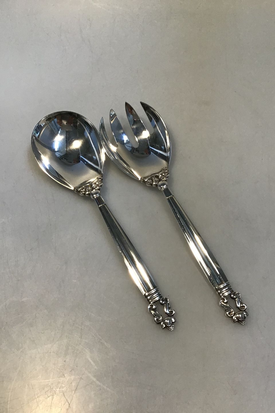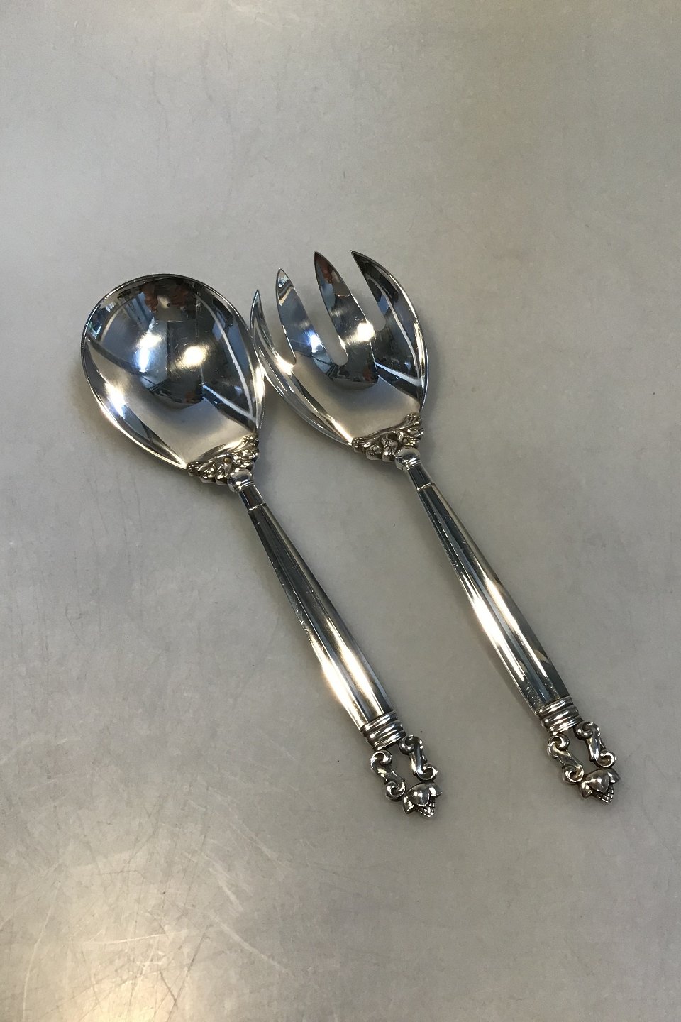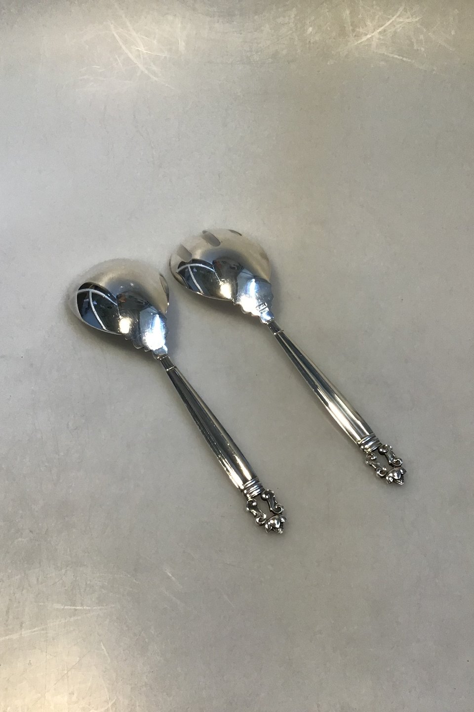 Georg Jensen Sterling Silver Acorn Servingset Medium, No 113+114 Measures Spoon 22.8 cm (8.97 in) Fork 22.6 cm (8.89 in)