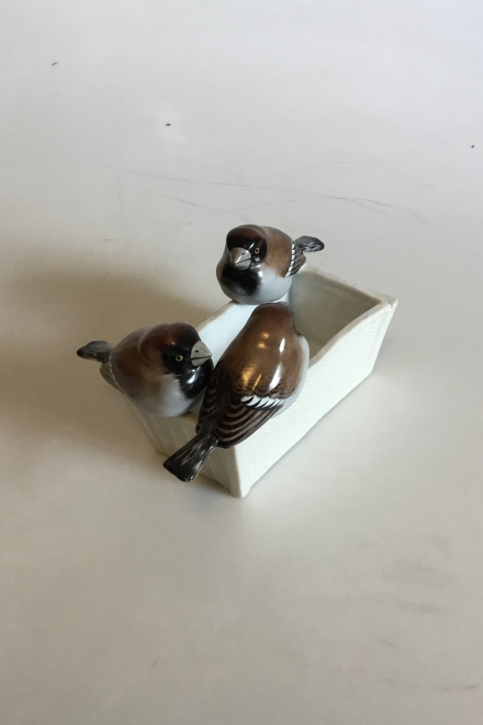 Faience Small Jardiniere with Three Sparrows. Measures 20 cm / 7 7/8 in.