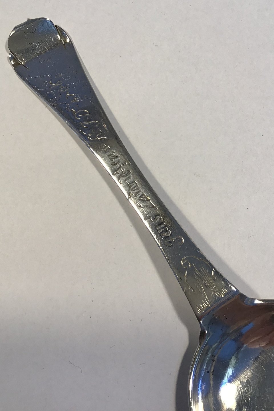 Danish Silver Spoon 1704(1706/1777) Numerous owners marks Reverse of bowl with contempory repair/reinforcement L 18.5 cm(7.28 in)