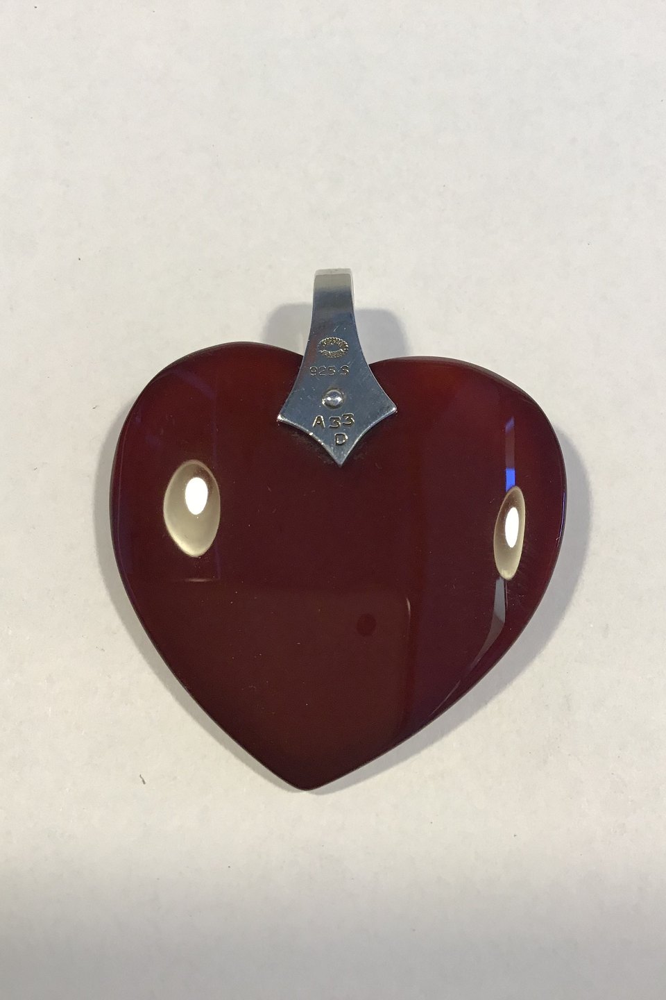 Georg Jensen Sterling Silver Carnelian Heart Pendant No A33 Measures H 4.7 cm(1.85 in) W 4 cm (1.57 in) Weight 16.1 gr/0.56 oz