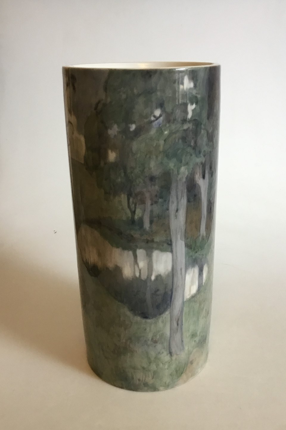 Unique Bing & Grondahl Art Nouveau cylindrical Vase. Marked XXVIII (28) and EH. Measures 35 cm / 13 25/32 in. x 16 cm / 6 19/64 in. dia.