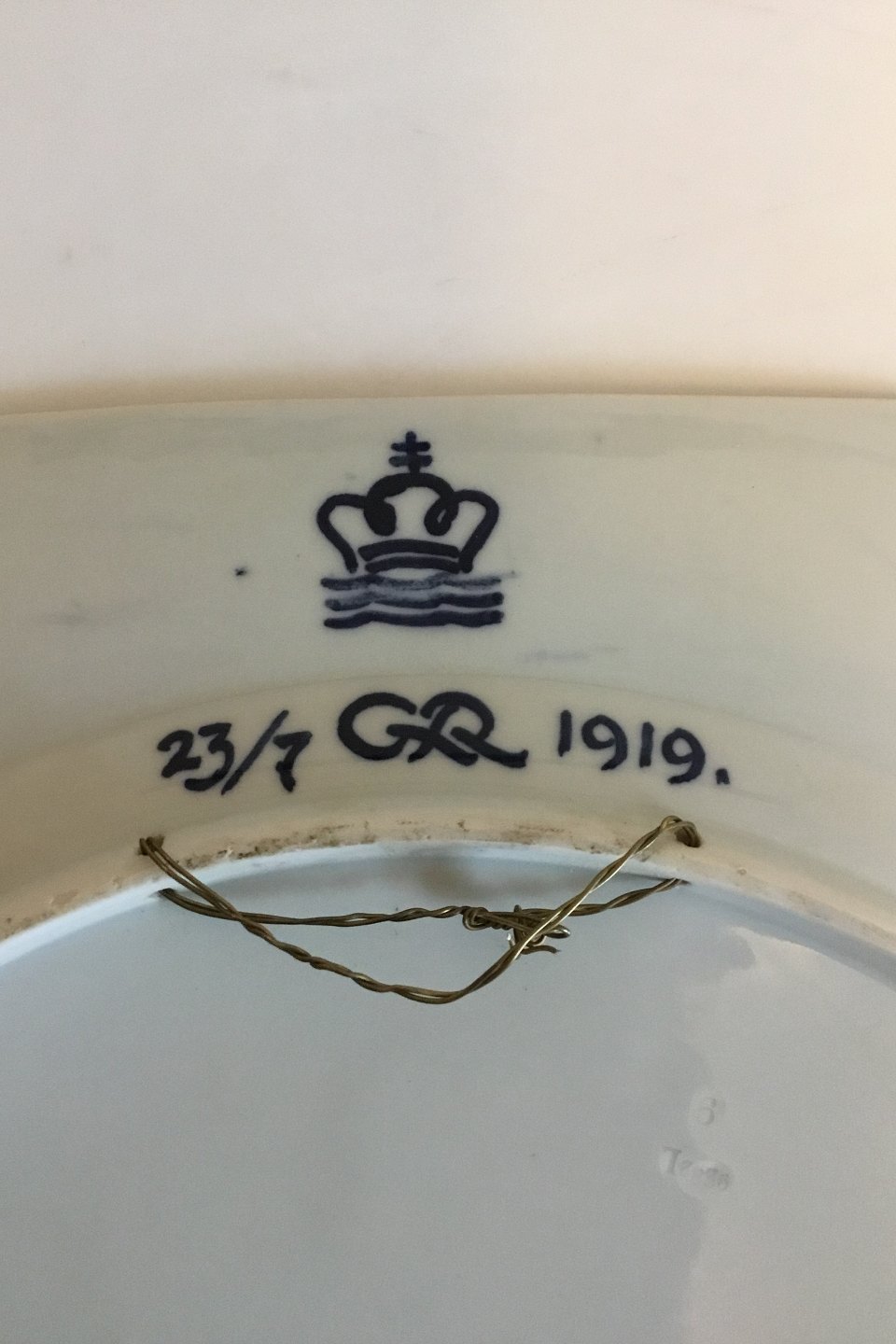 Royal Copenhagen Unique Faience octogonal Plate decorated with a goat eating of a tree. Gotfred Rode 23/7-1919. Measures 40 cm / 15 3/4 in.