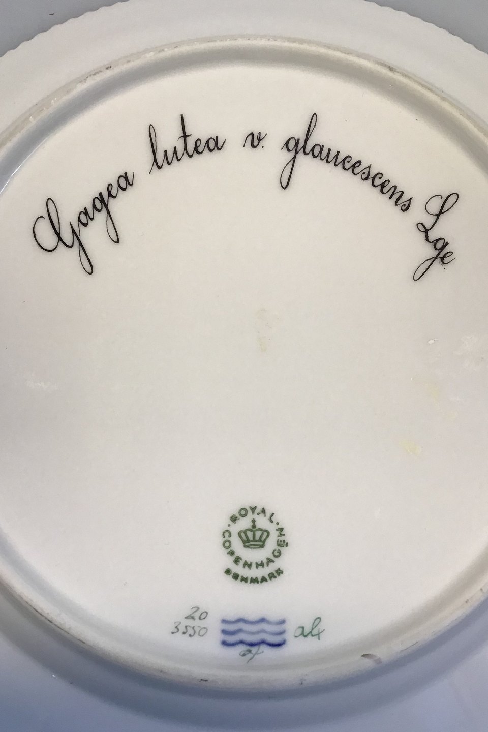 Royal Copenhagen Flora Danica Lunch Plate No 20/3550. Measures 22 cm / 8 21/32 in. 1st Quality. Latin name: "Gagea lutea glaucescens Lge"(Yellow star-of-Bethlehem)
