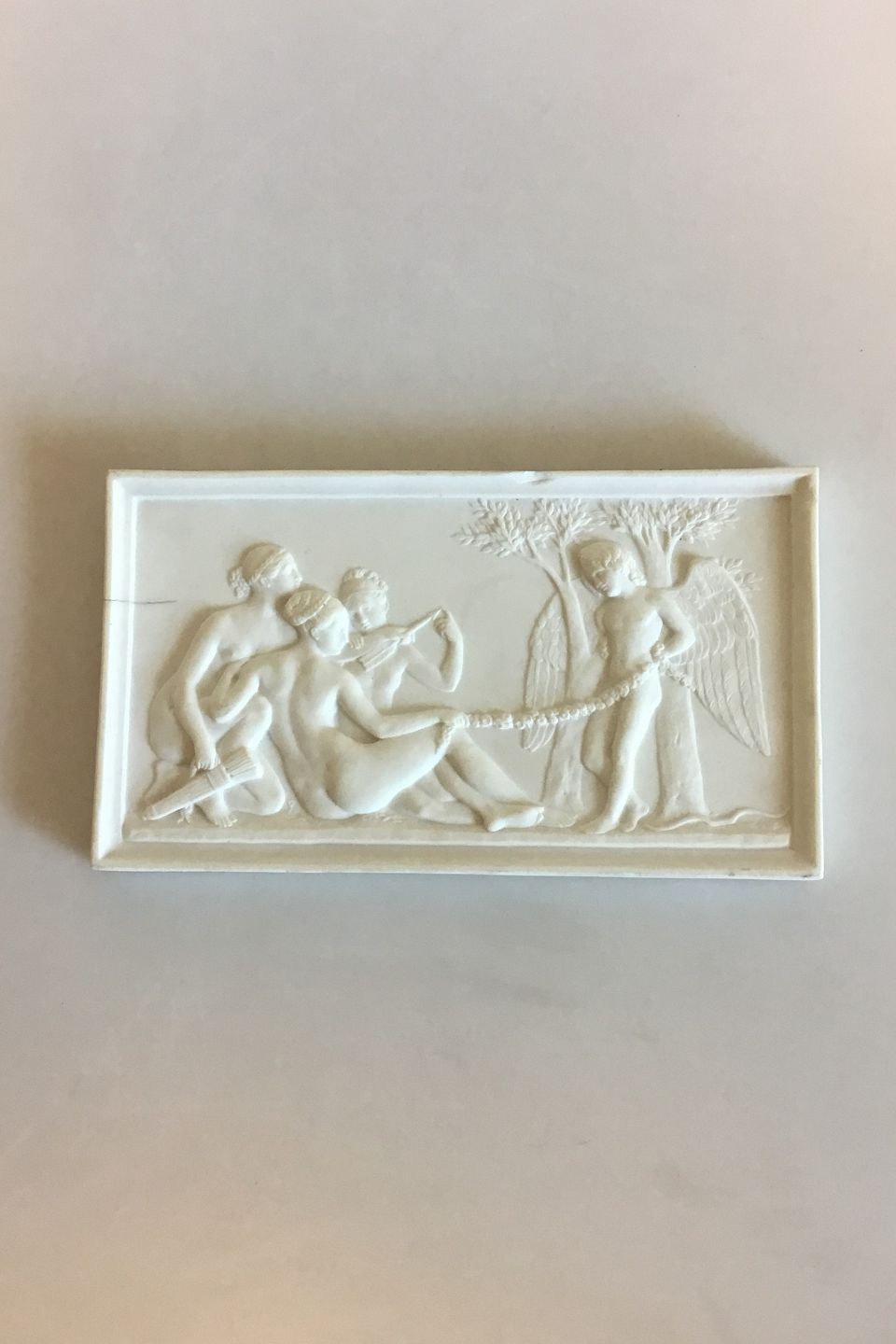 Bing & Grondahl "Amor taken prisoner by the gratuities". Copy of relief modeled in Rome in 1831. Measures 10.5 cm / 4 9/64 in. x 19 cm / 7 31/64 in. Small chip and crack