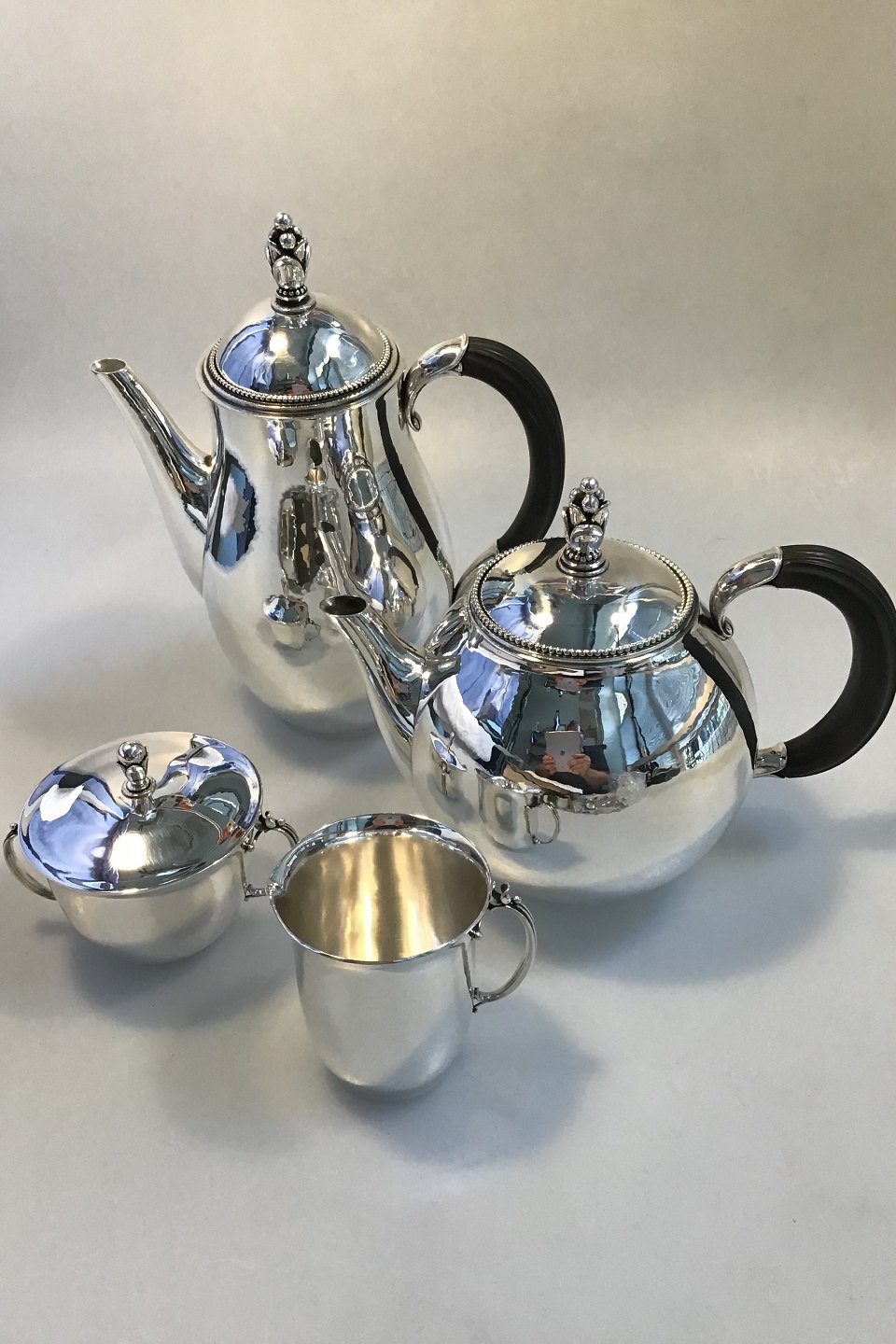 Georg Jensen Sterling Silver Coffee Pot, Tea Pot Creamer and Sugar Bowl No 456
