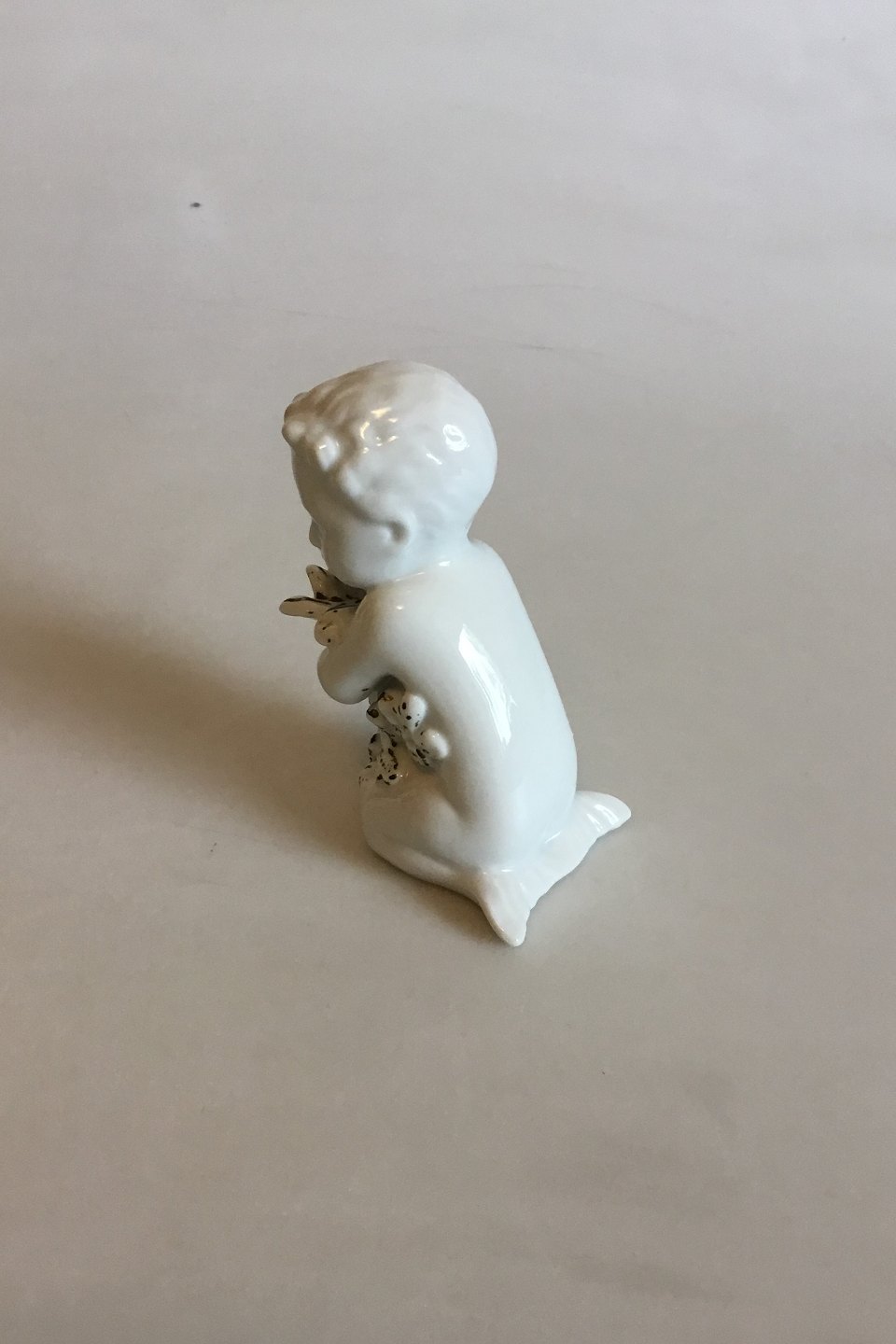 Bing & Grondahl Blanc de Chine Figurine of Child with seaweed No 2266. Deorated with gold. Measures 10 cm / 3 15/16 in.