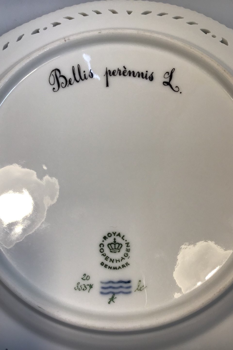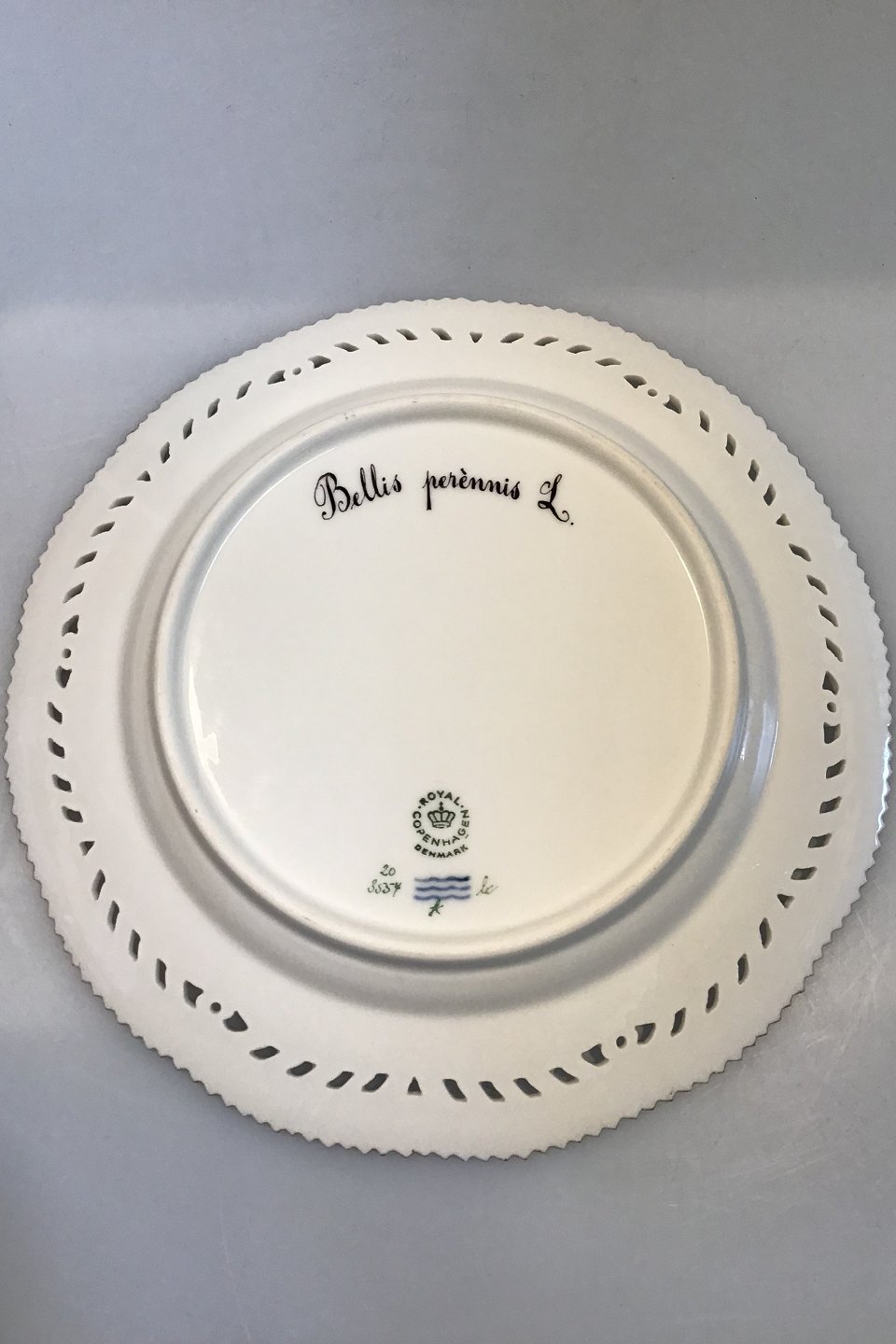 Royal Copenhagen Flora Danica Luncheon Plate No 20/3554 with Pierced Border. Latin Name: Bellis perennis L (European Daisy). Measures 23 cm (9 1/16"). 1st Quality.