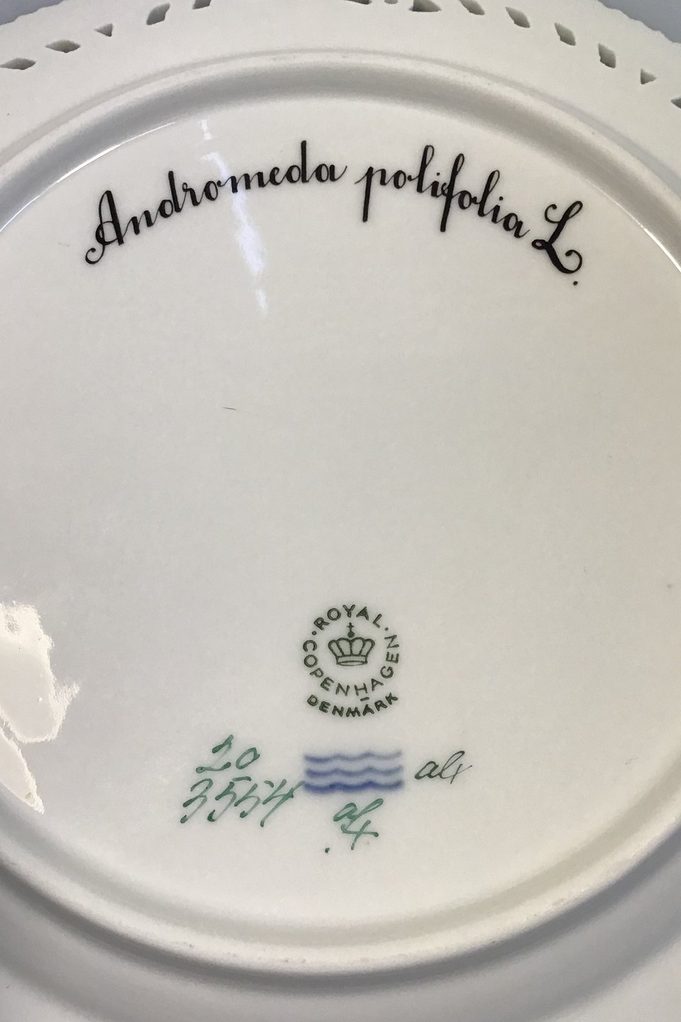 Royal Copenhagen Flora Danica Luncheon Plate No 20/3554 with Pierced Border. Latin Name: Andromeda polifolia L (Blue Ice). Measures 23 cm (9 1/16"). 1st Quality.