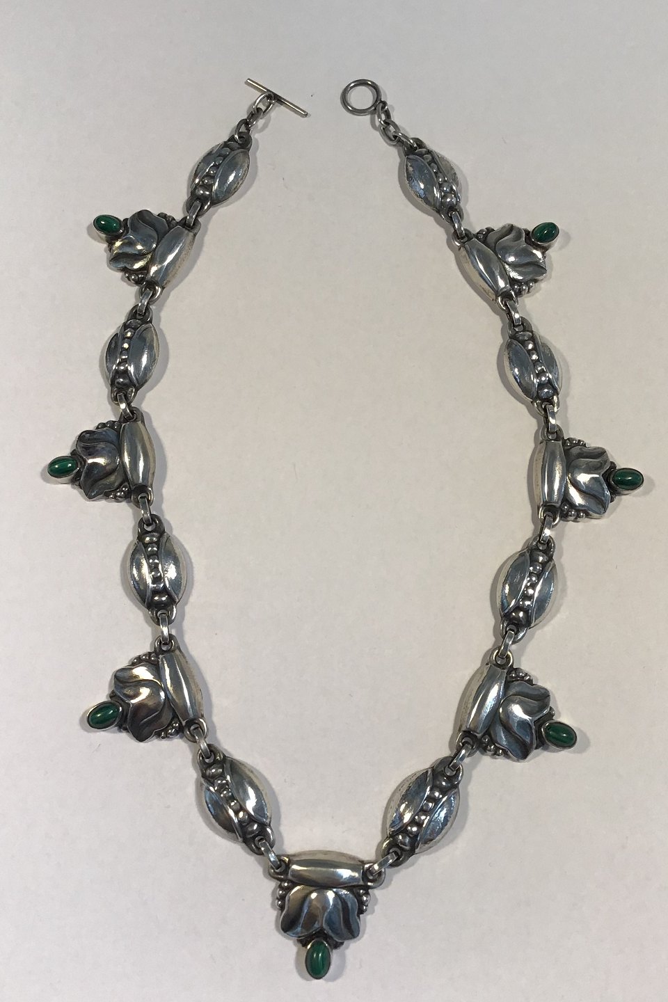 Georg Jensen Sterling Silver Necklace No 3 Malachite L 44 cm (17.32 in) Weight 50.4 gr/1.78 oz