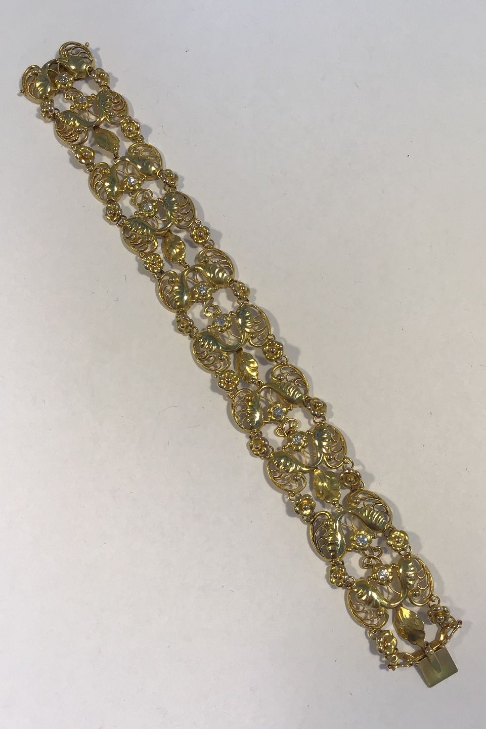Georg Jensen 18K Gold Diamondstudded Bracelet No 17(1930-45) 19 cm(7 ½ in) L Weight 38.2 gr/1.35 oz