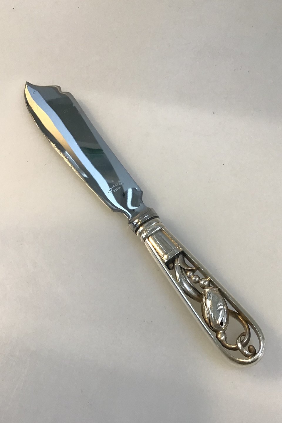 Georg Jensen Sterling Silver Blossom No 84 Cake Knife No 196 Measures 26 cm.(10.23 in) Steelblade.