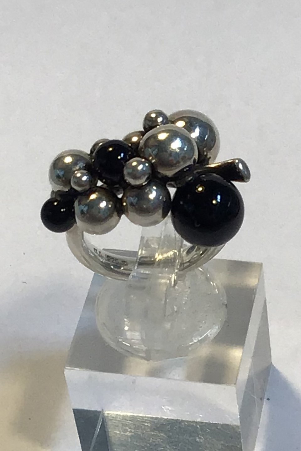 Georg Jensen Sterling Silver Ring Moonlight Grapes Onyx, Small Ring Size 48/US 4½ Weight 7.1gr/0.25 oz