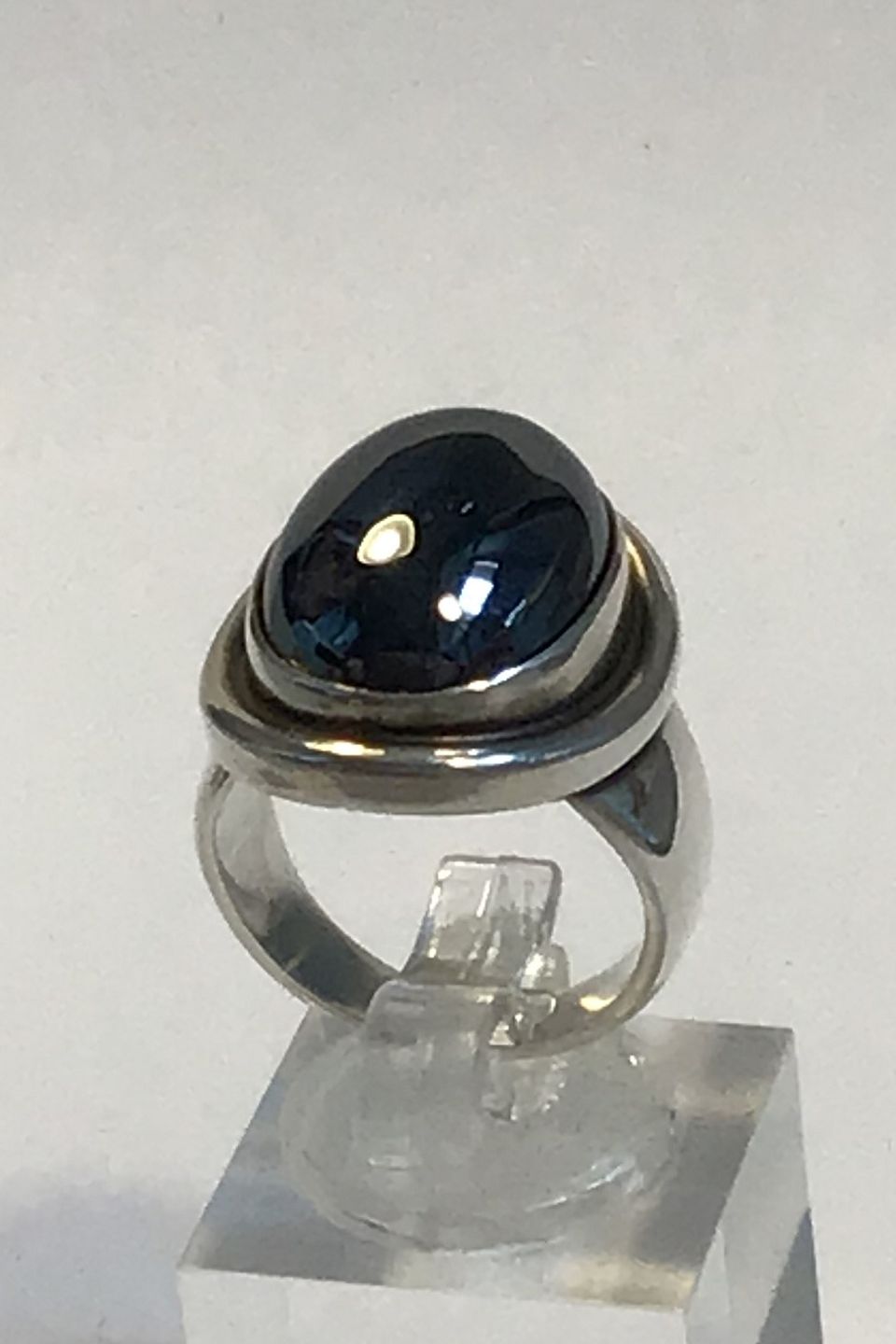 Georg Jensen Sterling Silver Ring No 46A Hematite Ring Size 50 US 4 1/2 Weight 13.1 gr/0.46 oz