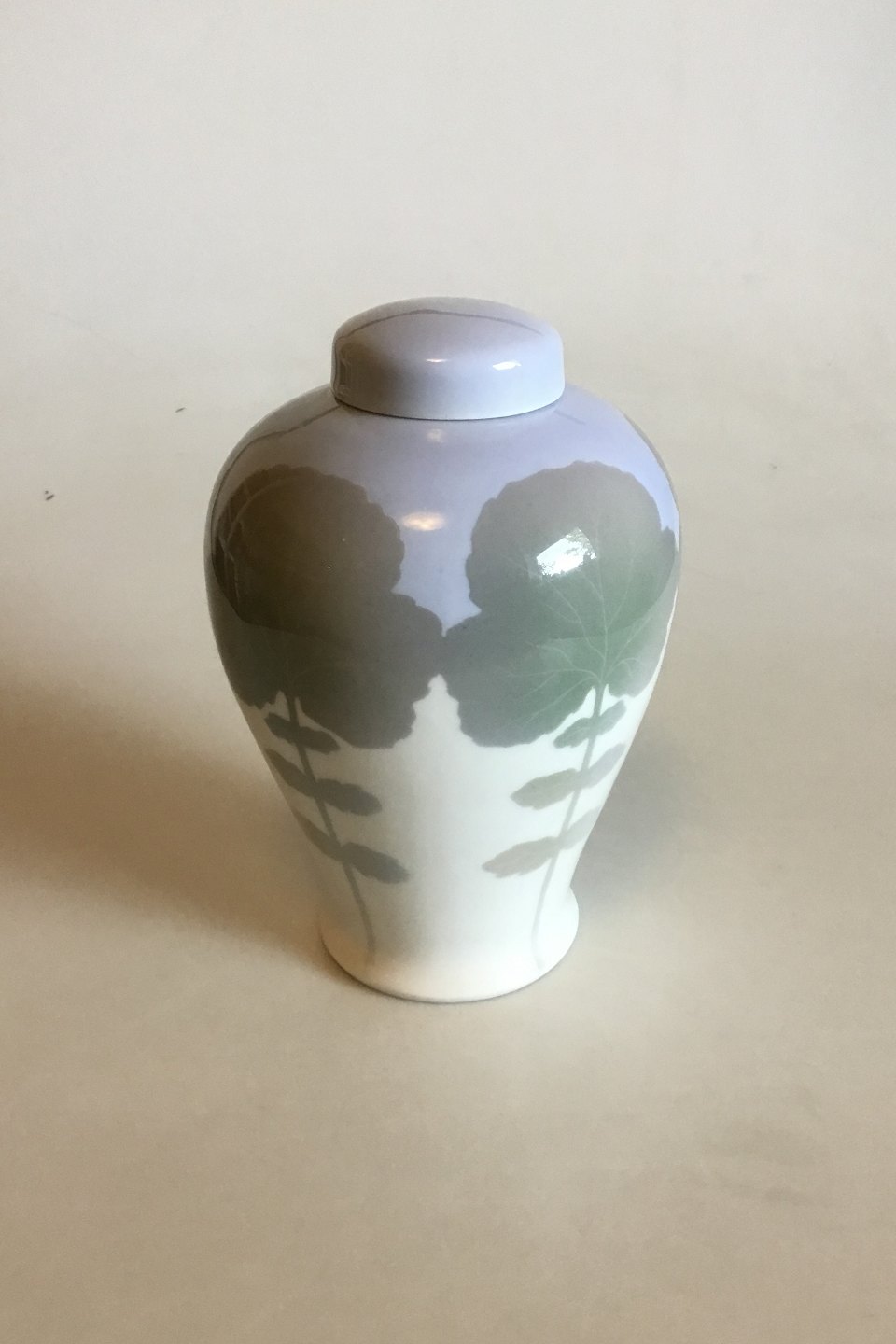 Royal Copenhagen Art Nouveau Lidded Vase with Leaf decoration No 312/53. Measures 21.5 cm / 8 15/32 in.