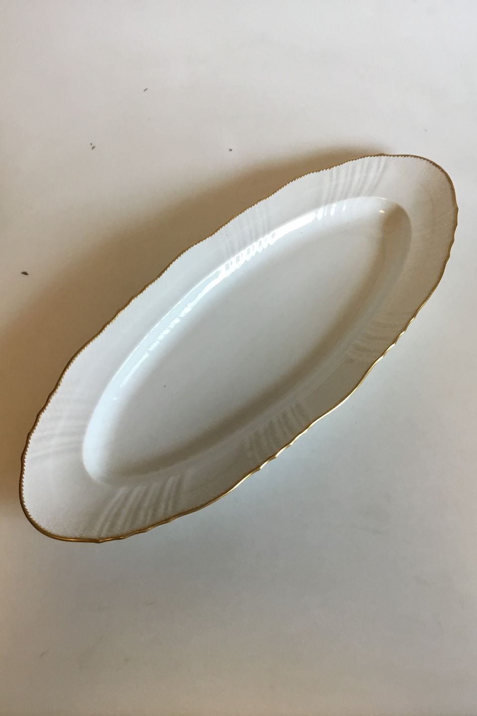 White Curved with serrated Gold edge(Pattern 387/ Josephine) Fsih Dish No 1561. Measures 61.5 cm / 24 7/32 in. x 25.5 cm / 10 3/64 in.