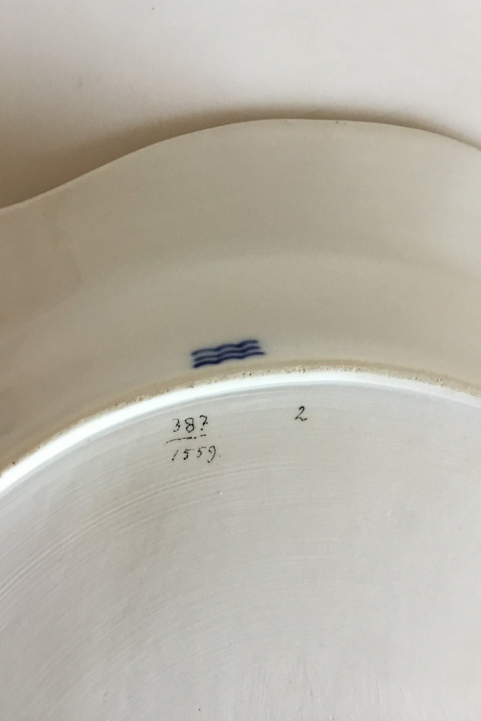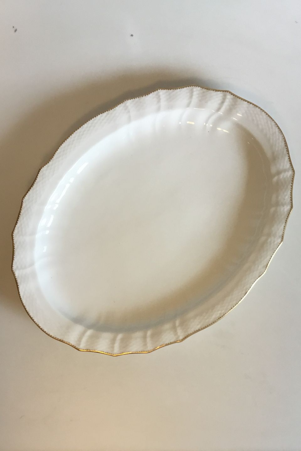 Royal Copenhagen White Curved with serrated Gold edge(Pattern 387/ Josephine) Oval Serving Dish No 1559. Measures 47 cm / 18 1/2 in. x 36 cm / 14 11/64 in