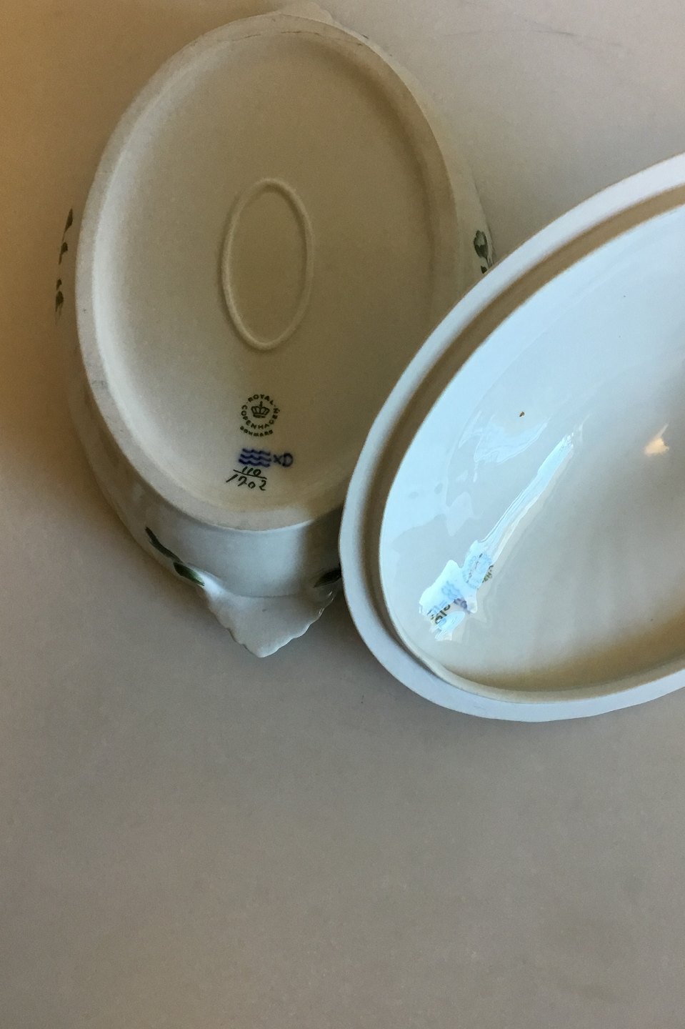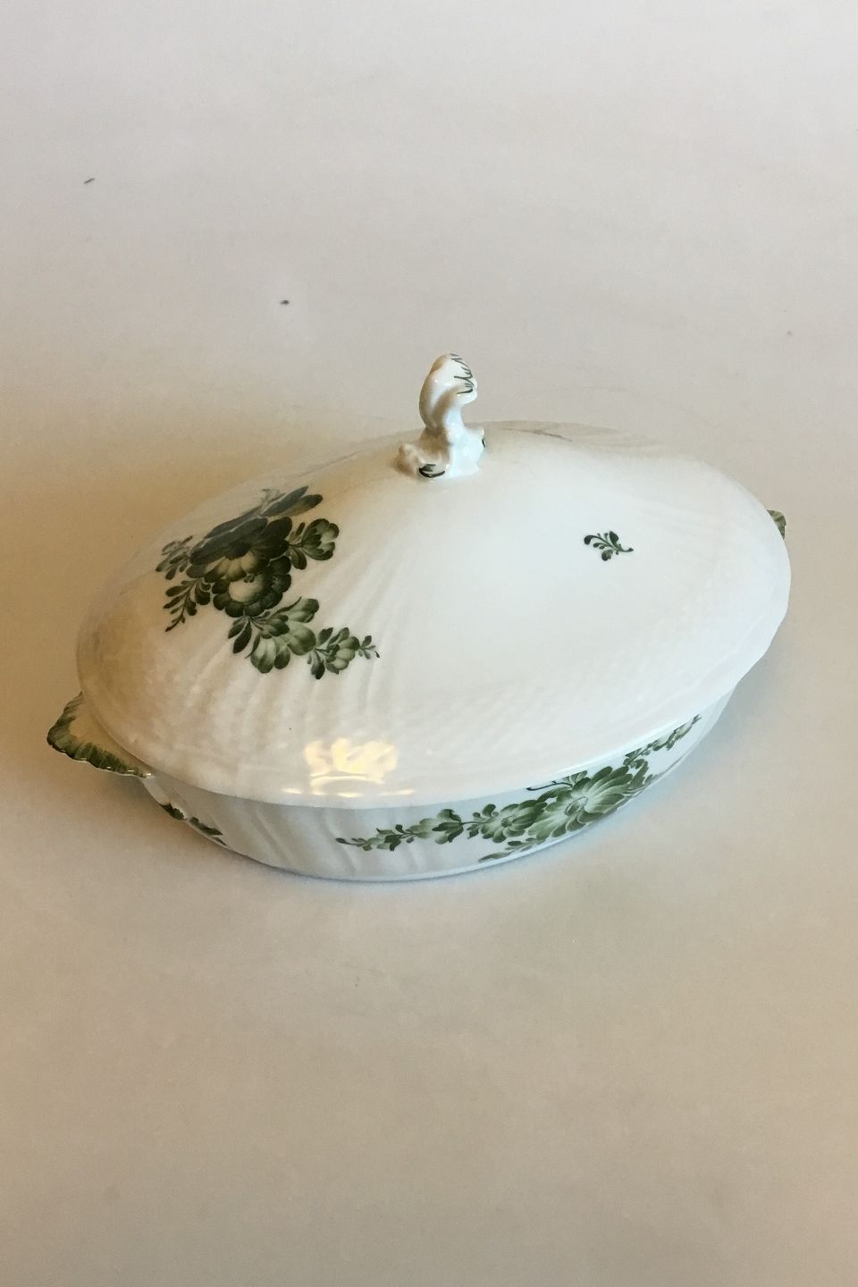 Royal Copenhagen Green Flower Curved Oval lidded bowl No 1702.