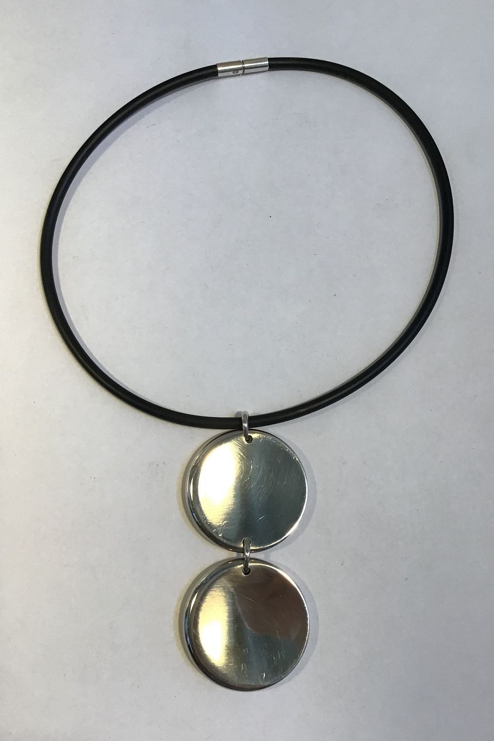 Georg Jensen Rubber Neck Ring and Sterling Silver Pendant No 450 Zero Jacqueline Rabun Neck Ring Diam 13.5 cm Pendant 2 Discs 4 cm(1.57 in) Diam Combined Weight 41.9 gr/1.48 oz