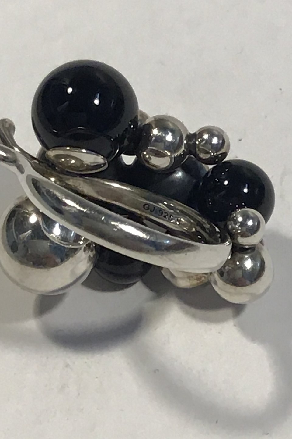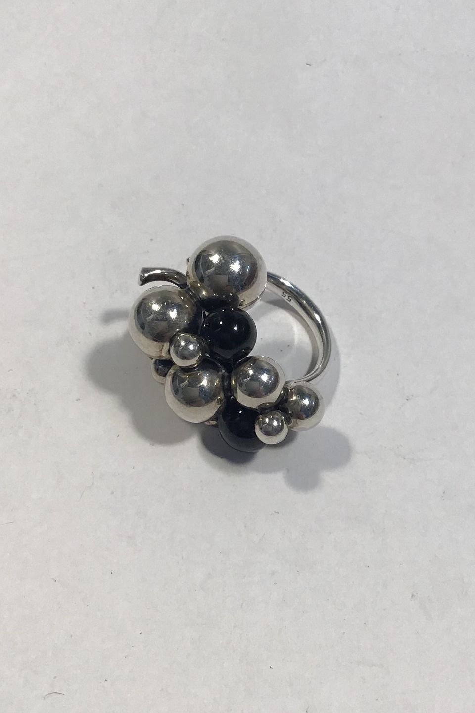 Georg Jensen Sterling Silver Ring Moonlight Grapes Onyx, Large Ring Size 55/ US 7 1/4 Weight 19.5 gr/0.69 oz
