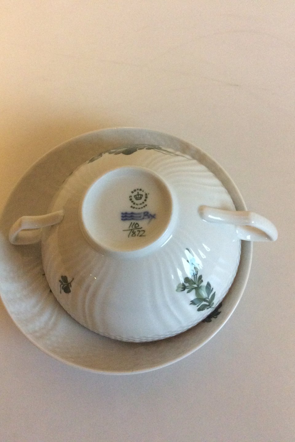 Royal Copenhagen Green Flower Curved Bouillon Kop with handle No 1872.