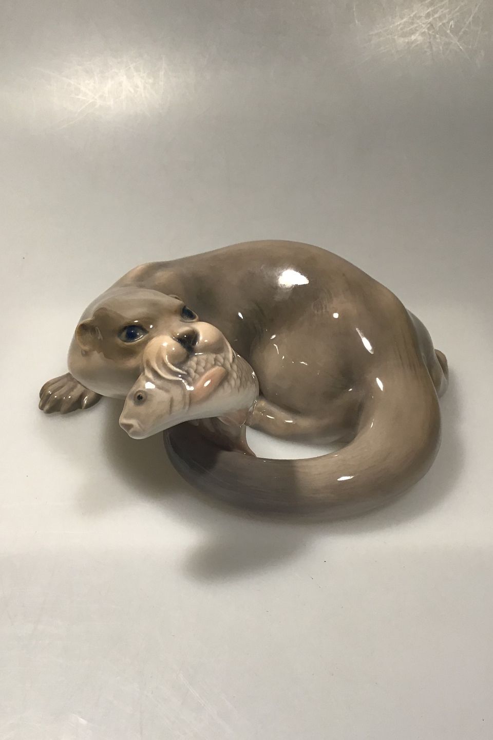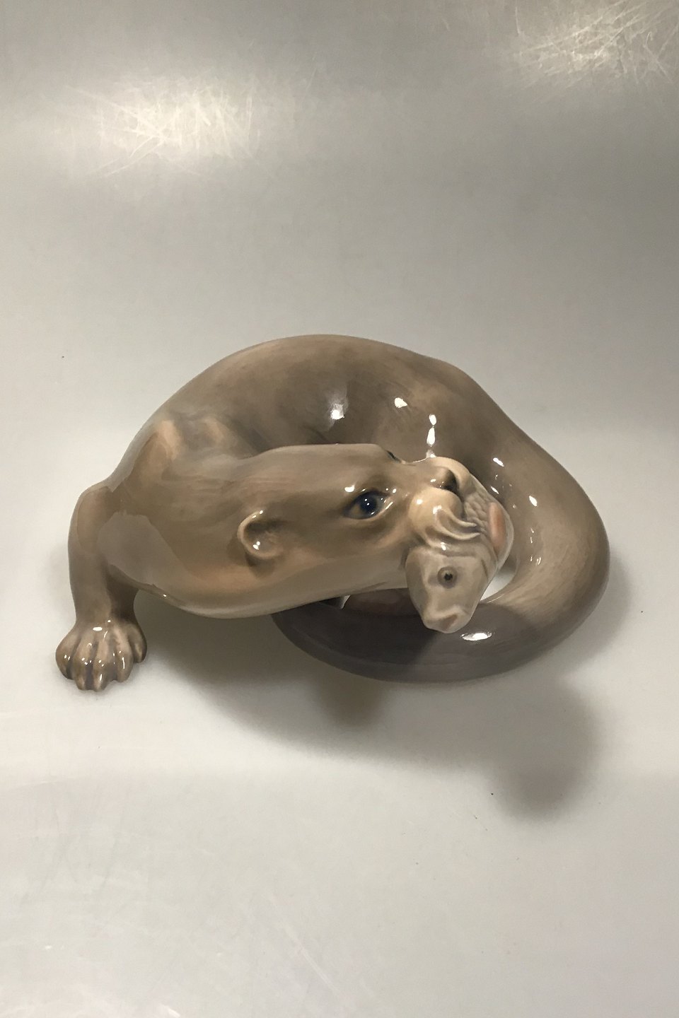 Bing & Grøndahl B&G No 1969 Otter with fish Measures 9 cm x 21 cm(3 35/64 in x 8 17/64 in) Design Niels Nielsen