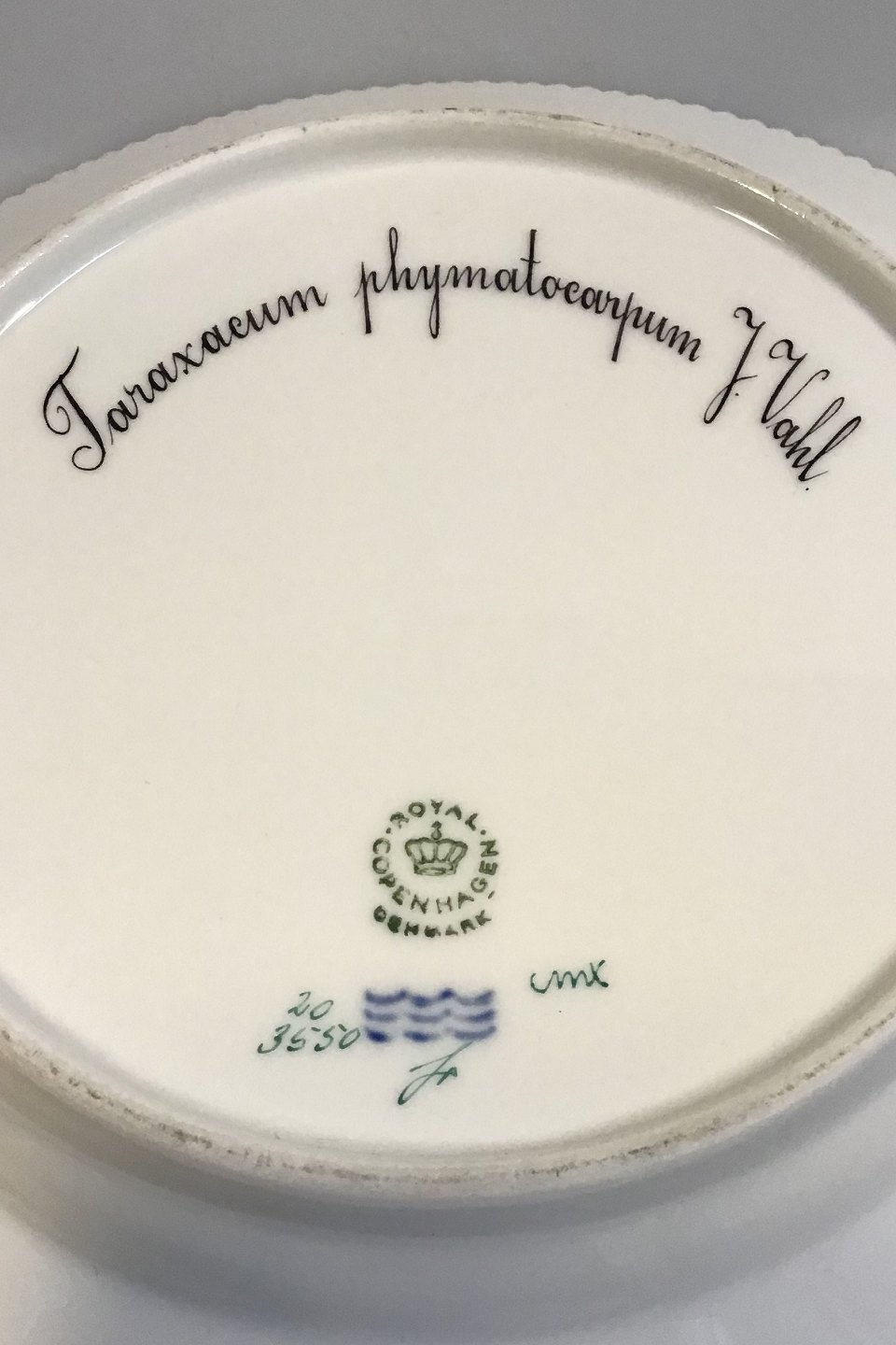 Royal Copenhagen Flora Danica Lunch Plate No 20/3550. Measures 22 cm / 8 21/32 in. 1st Quality. Latin name: "Taraxacum phymatocarpum J Vahl"(Northern dandelion)