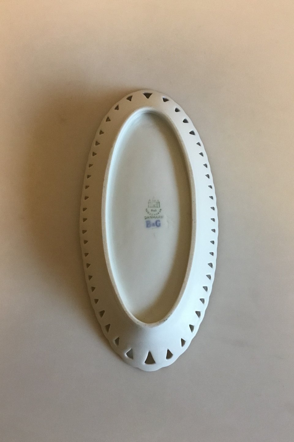 Bing & Grondahl Seagull with Gold Oblong Dish with pierced border. Measures 23 cm / 9 1/16 in. x 11 cm / 4 21/64 in.