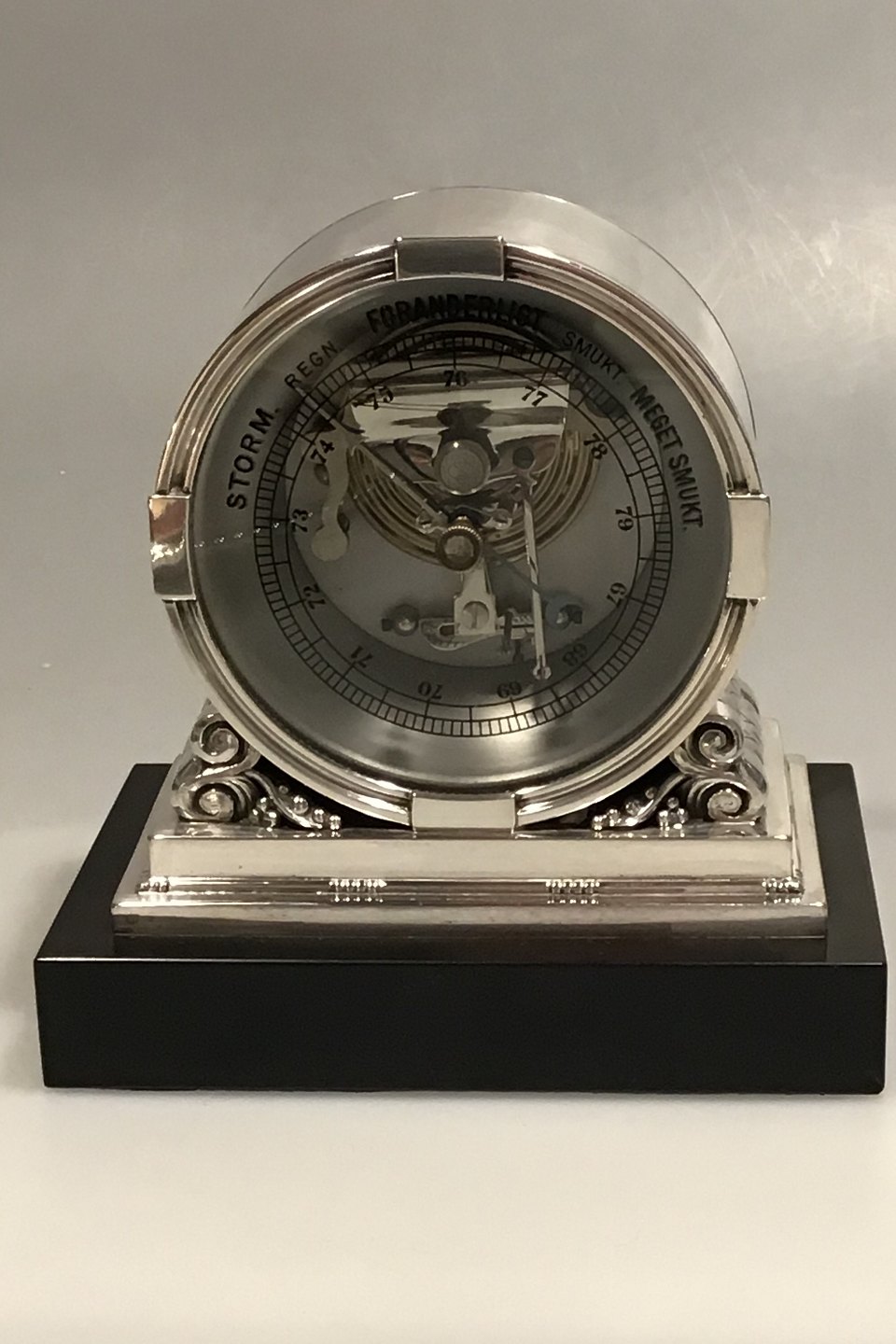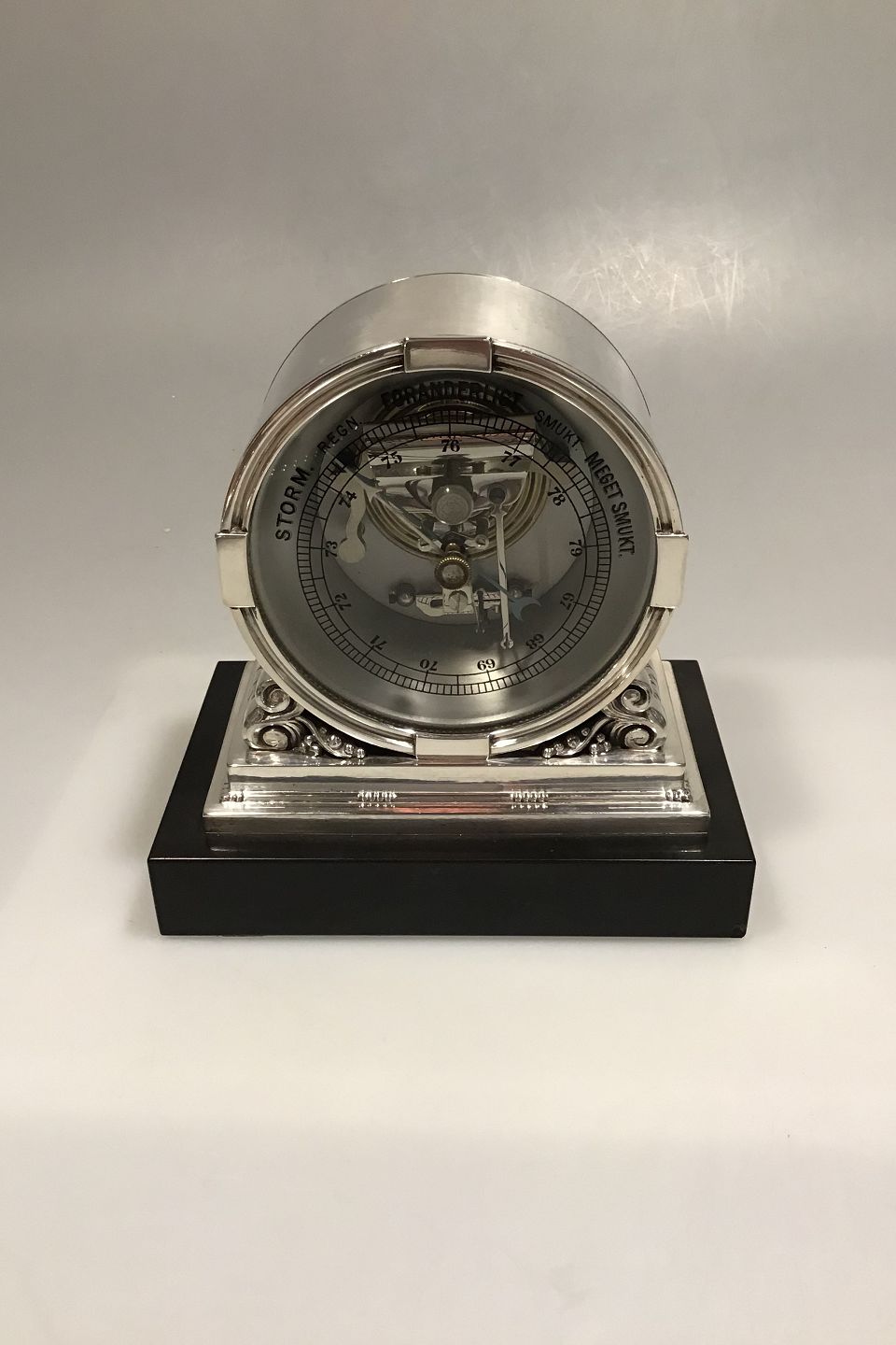 Georg Jensen "Acorn" Sterling Silver Barometer No. 596. Designed by Johan Rohde.