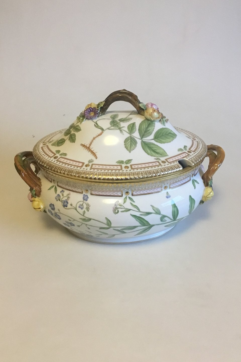 Royal Copenhagen Flora Danica Tureen No 3559 Measures 34 cm x 23 cm x 23 cm(13.38 in x 9.05 in x 9.05 in) Latin names Lathyrus tuberosus L, Nyosotis palustris With. and Rosa mutica Müll.