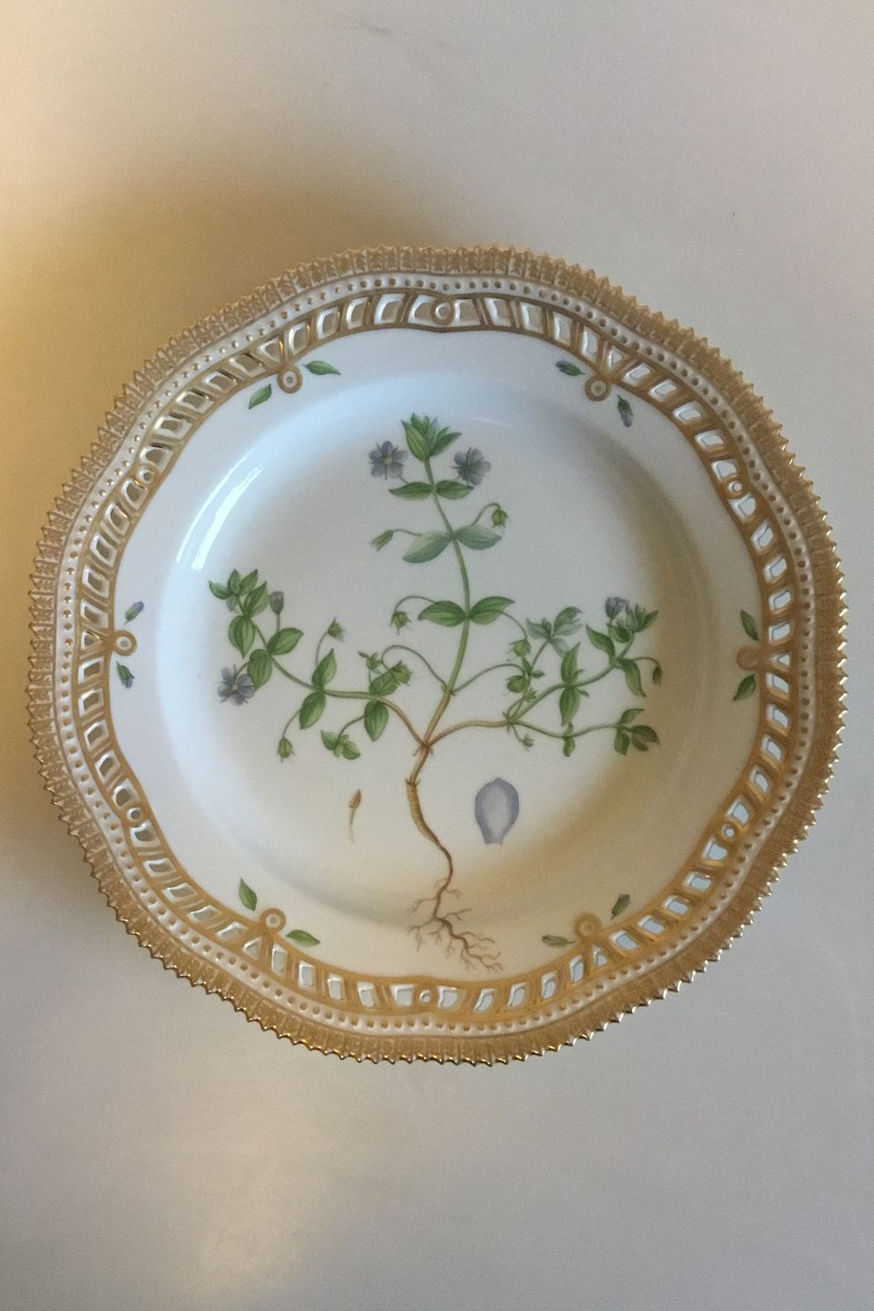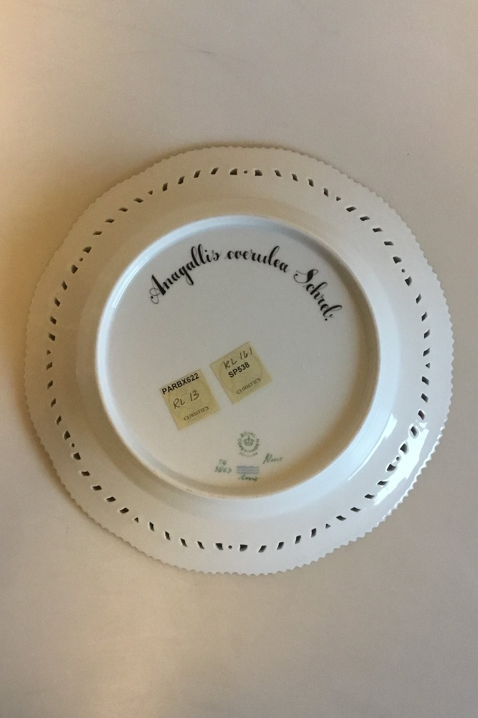 Royal Copenhagen Flora Danica Plate with pierced border No 20/3553. Latin name: Anagallis coerulea Schreb. Måler 25.5 cm / 10 3/64 in.
